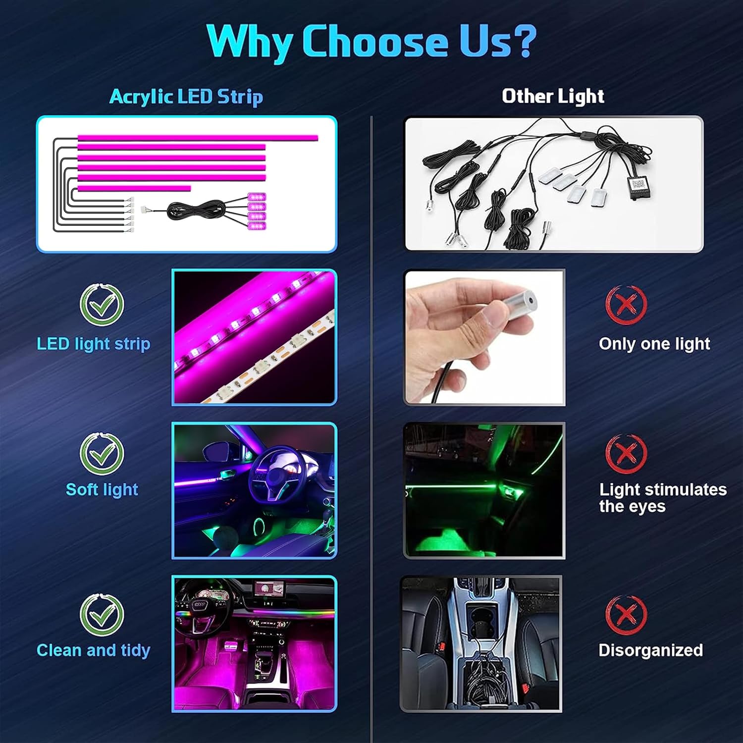 - 【Satisfactory Shopping Experience】 our acrylic car ambient light kit comes with a one-year warranty, any problems with the product, we can replace the parts or the whole light kit for you for free.