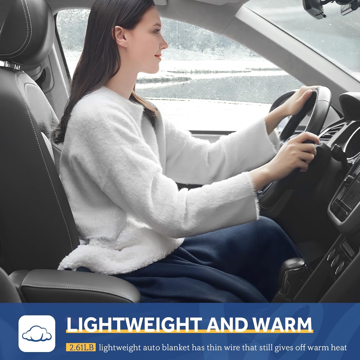 - 【Extended Power Cord】Portable electric blanket specifically designed with heavy duty insulated cord, 85 inches long power cord, don't worry about being restricted to heated positions, Say goodbye to the constraints of limited heated positions, you can enjoy the cozy warmth wherever you choose to sit, guaranteeing a truly enjoyable journey.