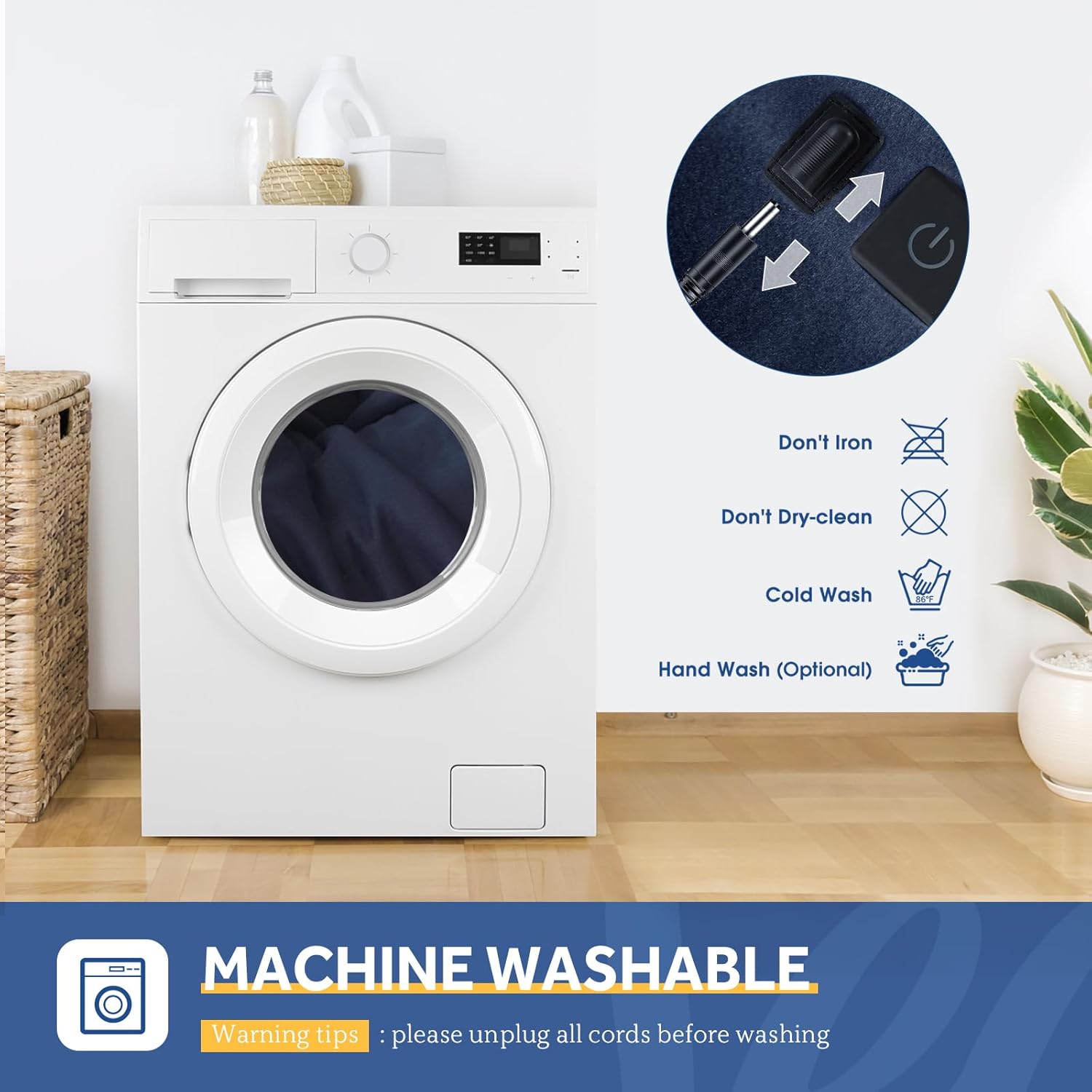 - 【Machine Washable】Electric car blanket with silicone switch on blanket. The car heating blanket can be washed in the washing machine and then dried at low temperature. Please disconnect the controller and power cable before washing, please remember DO NOT dry clean, DO NOT bleach, and don't use it if wet. Please read the user manual carefully.