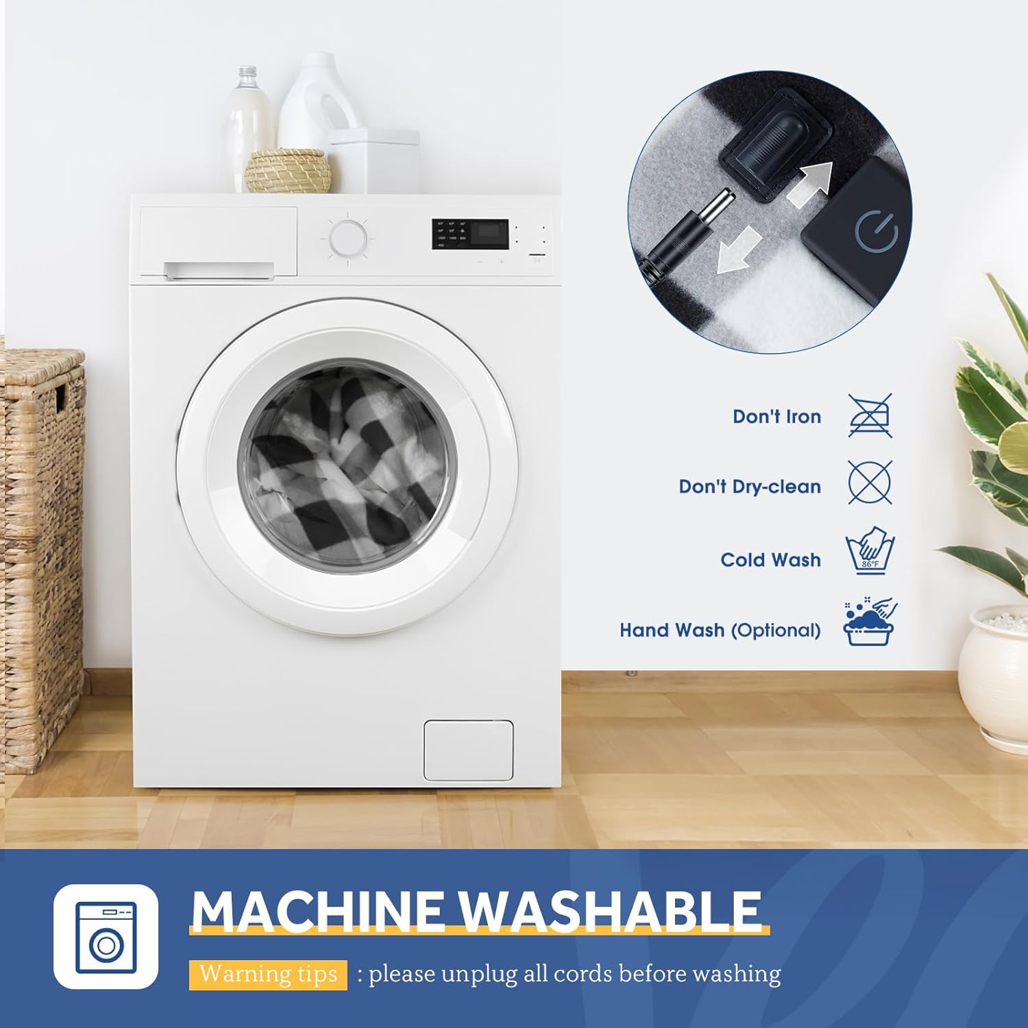 - 【Machine Washable】Electric car blanket with silicone switch on blanket. The car heating blanket can be washed in the washing machine and then dried at low temperature. Please disconnect the controller and power cable before washing, please remember DO NOT dry clean, DO NOT bleach, and don't use it if wet. Please read the user manual carefully.