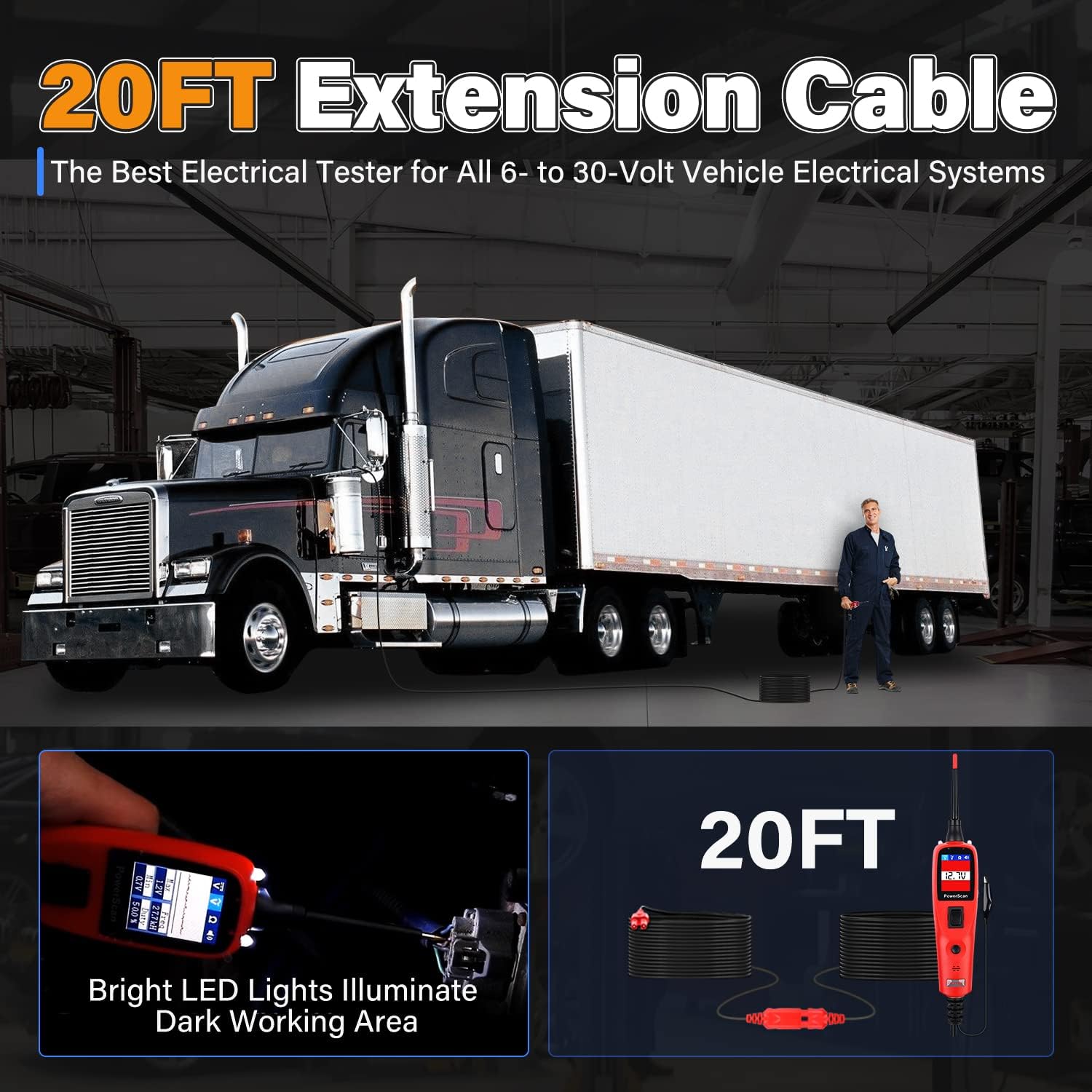 - 👍【20FT Extension Cable & Cigarett.e lighter plug—Convenient】Unlike the power probe, Autel PS100 Automotive Power Circuit Probe Tester comes with 20 feet long cord plus 20 feet extension cord. Combining the feature that it can be powered by the ci*gare.tte li*ghter, and alligator clip for convenient ground connection, you can test electrical circuit system anywhere around the longer vehicles and trailers. Extra cigarette lighter plug, no need to open the hood to connect the battery, so you can easily and quickly conduct in-vehicle circuit testing