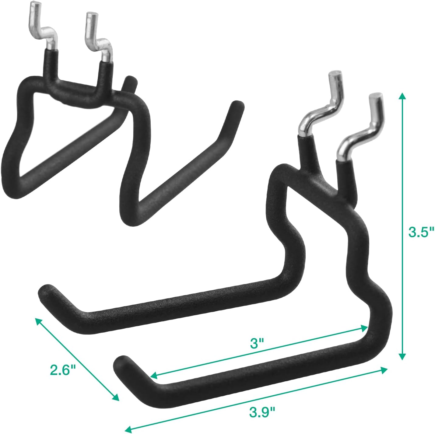 - 8-Pack Heavy Duty Wall Hooks: 4 x Short type flat double hooks, 4 x long type flat double hooks. Garage Storage Hooks with a rubber-like coat got anti-slip and anti-scratch feathers, holding tools well and firmly. Zinc plating helps stop corrosion