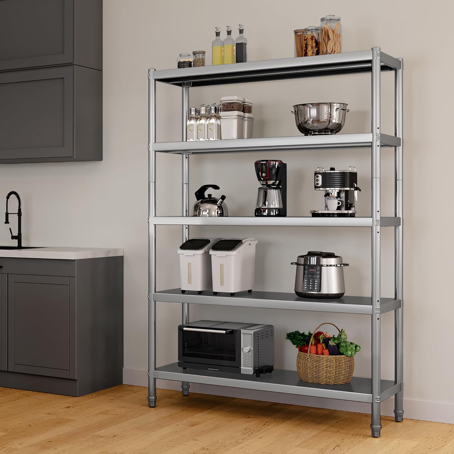 YITAHOME NSF Stainless Steel Shelves, 60"*18"*72" 5 Tier Storage Shelf, Heavy Duty Shelving for Kitchen Garage Office Restaurant Warehouse, 201 Bright Silver