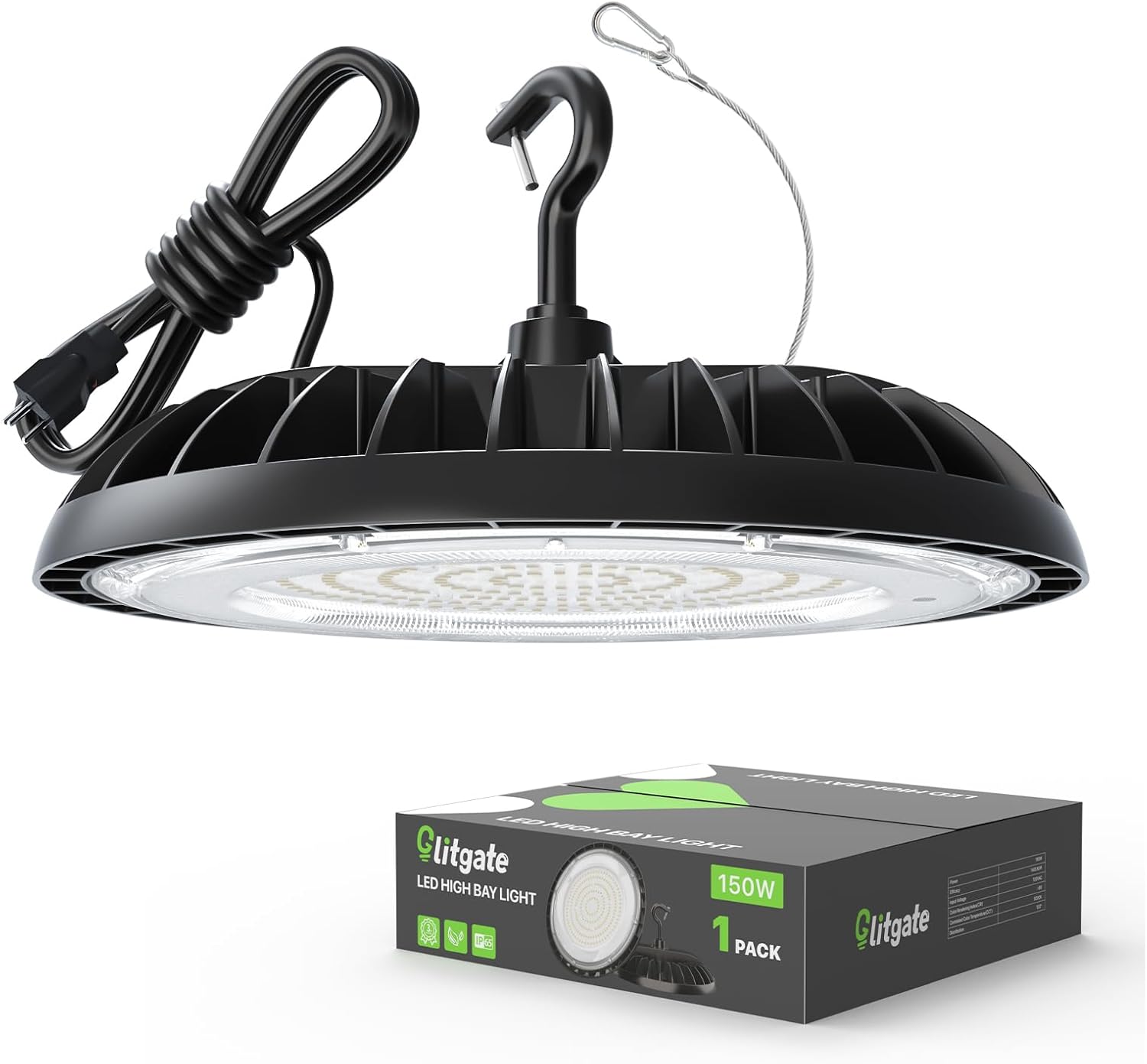 LED High Bay Light 150W, 21000lm 5000K UFO Led High Bay Light(600W MH/HPS Equiv.), Commercial Bay Lighting with 5ft Cable US Plug for Garage Shop Barn Warehouse