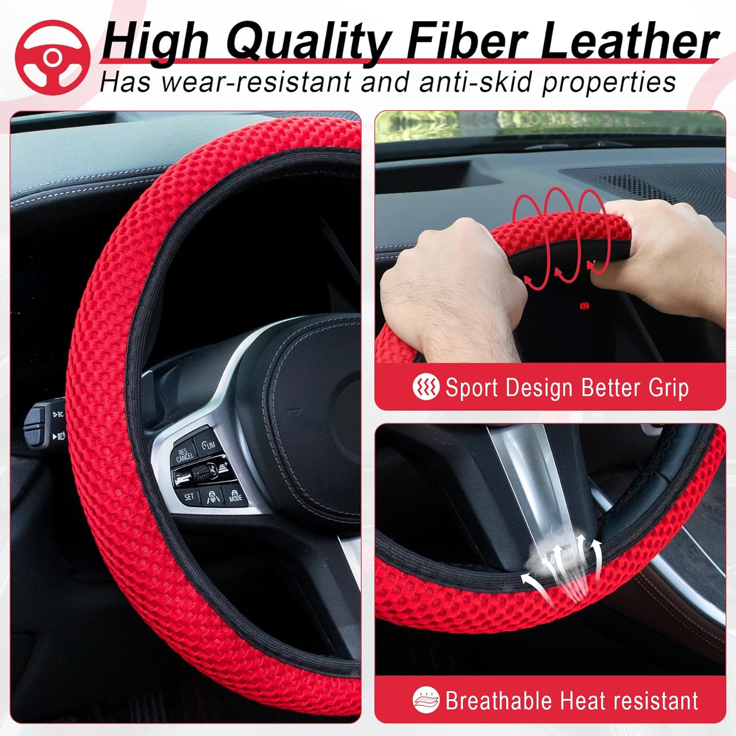 - 【Special Design】: Steering wheel covers can not only decorate your car perfectly, but also massages your palm, also protects your steering wheel from sunburn, scratches, fading, scuffs and dirt, keeping your steering wheel in brand new condition. Made of soft materials, giving you a comfortable touch.