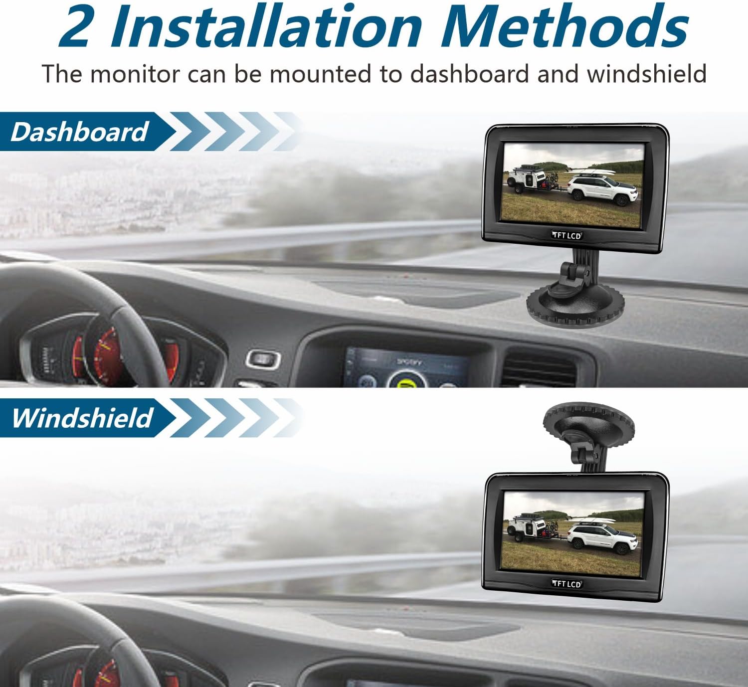 - Easy Installation and Operation---With a magnetic base, the wireless backup camera can be attached to any metal surface with no drills, powered by rechargeable battery. Monitor equipped with suction cup base, 180 degree rotatable, can be installed on dash or windshield as you like. The installation process only takes 3-5 minutes.