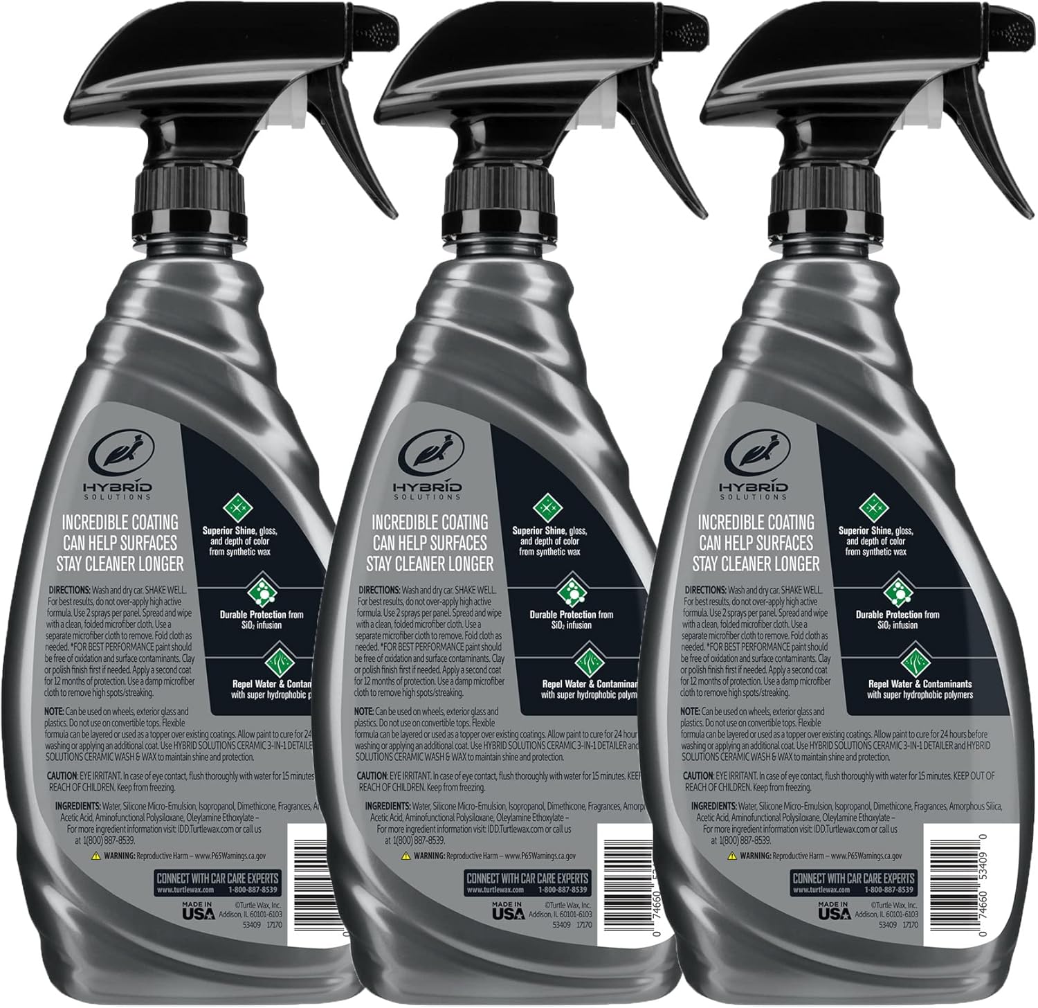 Turtle Wax 53883 Hybrid Solutions Ceramic Spray Coating, Incredible Shine and Protection for Car Paint, Extreme Water Beading, Safe for Cars, Trucks, Motorcycles, RV's and More, 16 oz. (Pack of 3)
