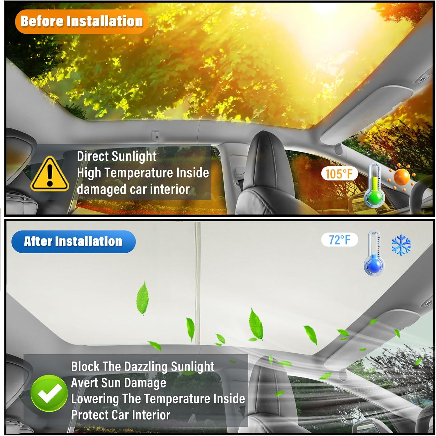 - 【Fitment】-Sze Glass roof sunshade specially designed for Tesla Model Y 2020 2021 2022 2023 2024 2025. Full covered your top window, No gap,100% perfect fit.
