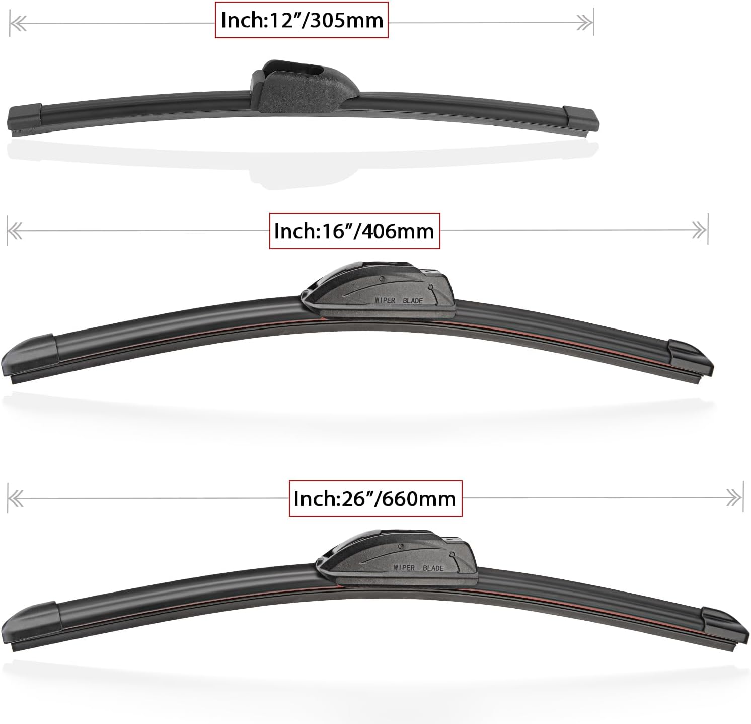 - {FITMENT}: Replacement for 2017 2018 2019 2020 2021 2022 Kia Niro 26inch + 16inch front with 12inch rear windshield wiper blades.