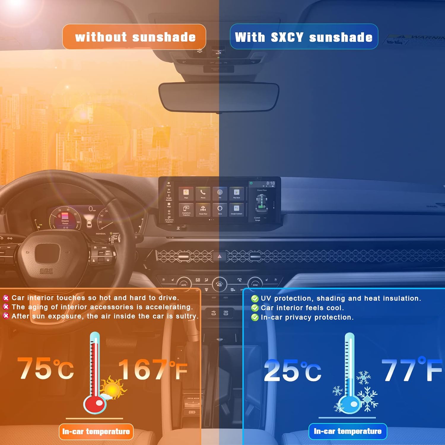 - 3.High Quality Polyester Material : this shield sun protector for your 2021 2022 2023 2024 Honda Accord has 4 layer structure, Four-layer protection to the greatest extent isolates the damage to the car body from ultraviolet rays, strong light, heat, etc.