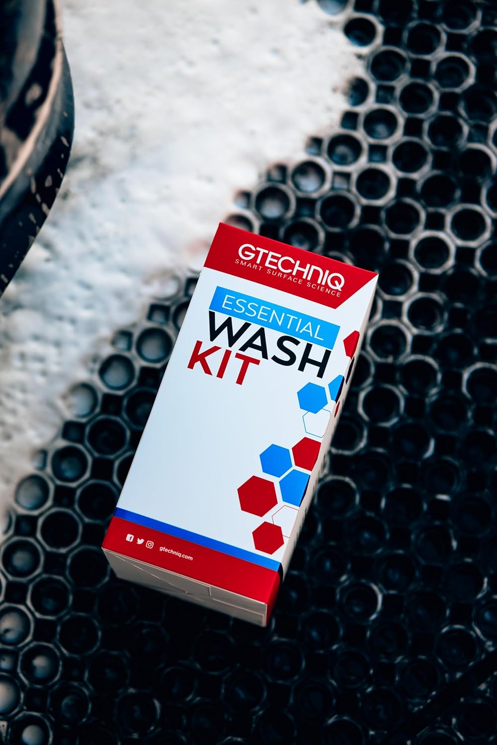 Gtechniq Essential Car Wash Kit, Car Cleaning Kit with Car Shampoo, Wheel Cleaner, Microfiber Car Wash Mitt and Microfiber Towel, Car Accessories for Highly Effective Cleaning