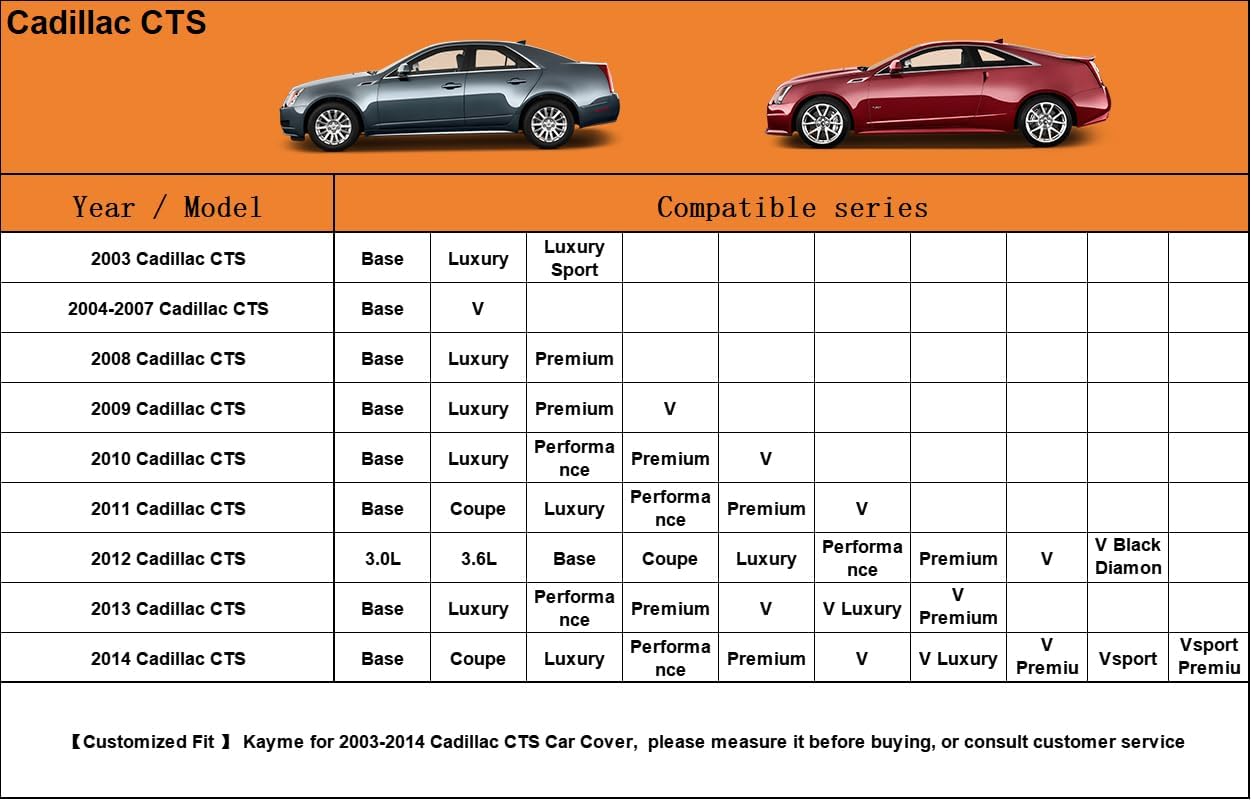 - 【Suitable for】— Custom fit for Cadillac CTS (2003-2014). Come with a large enough portable bag to store your cover when you do not use