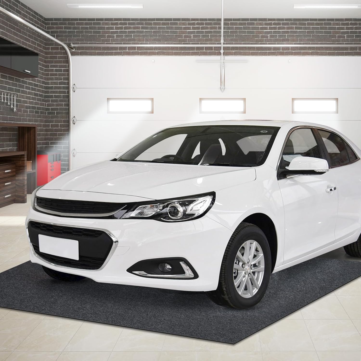 - 【Durable Material】The garage mat is made of tight felt and TPR material. The felt on the top is high-density woven and the TPR on the bottom will not come off, so it won't ruin your floors. You can use it for a long time.