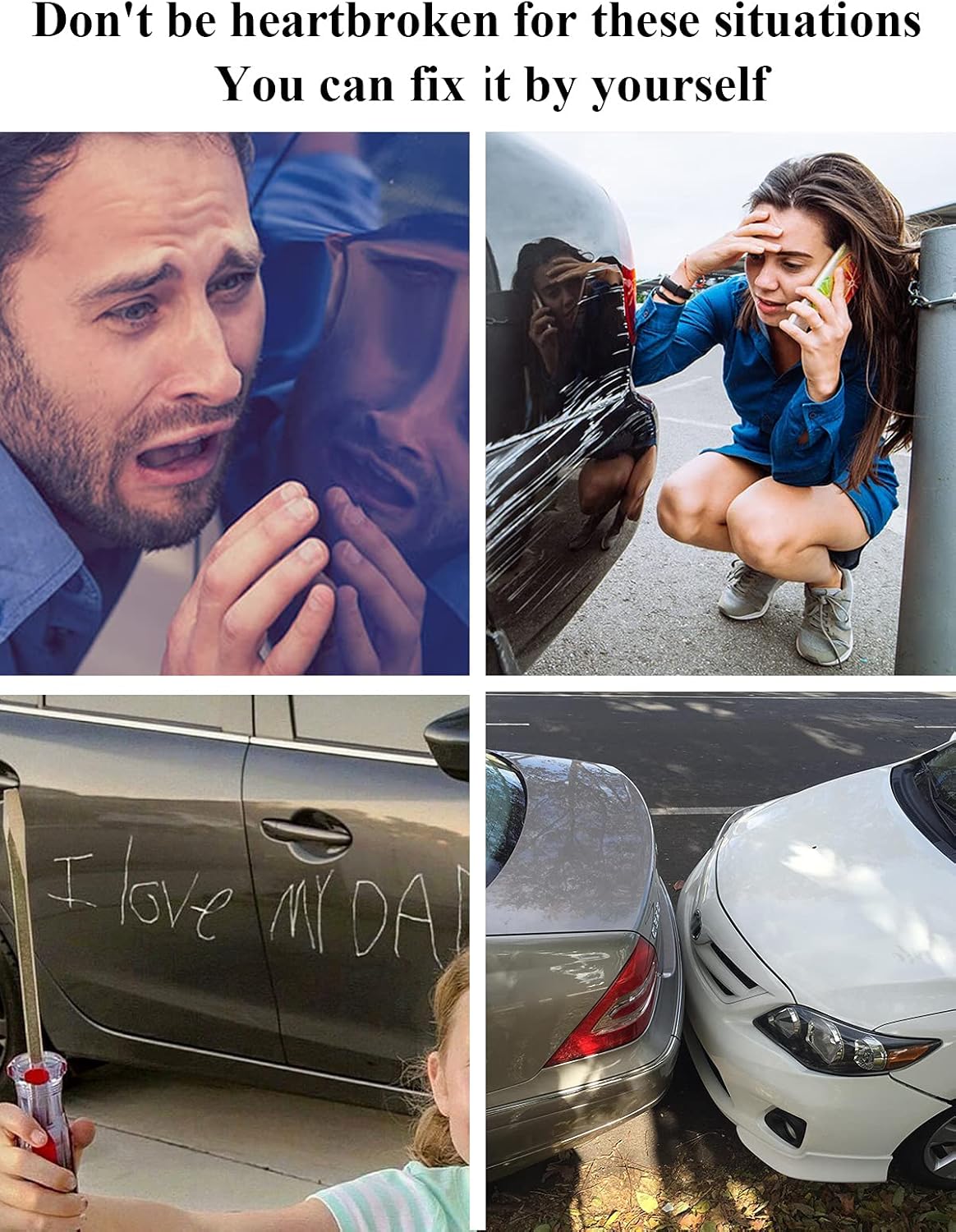 - The daily drive gets rock chips and scratches: Rock chips on the bumper, road rash on rims, the front and passenger side all get many scratches. You will prefer SYOAUTO pearl black car touch up paint to the white dings in your black paint