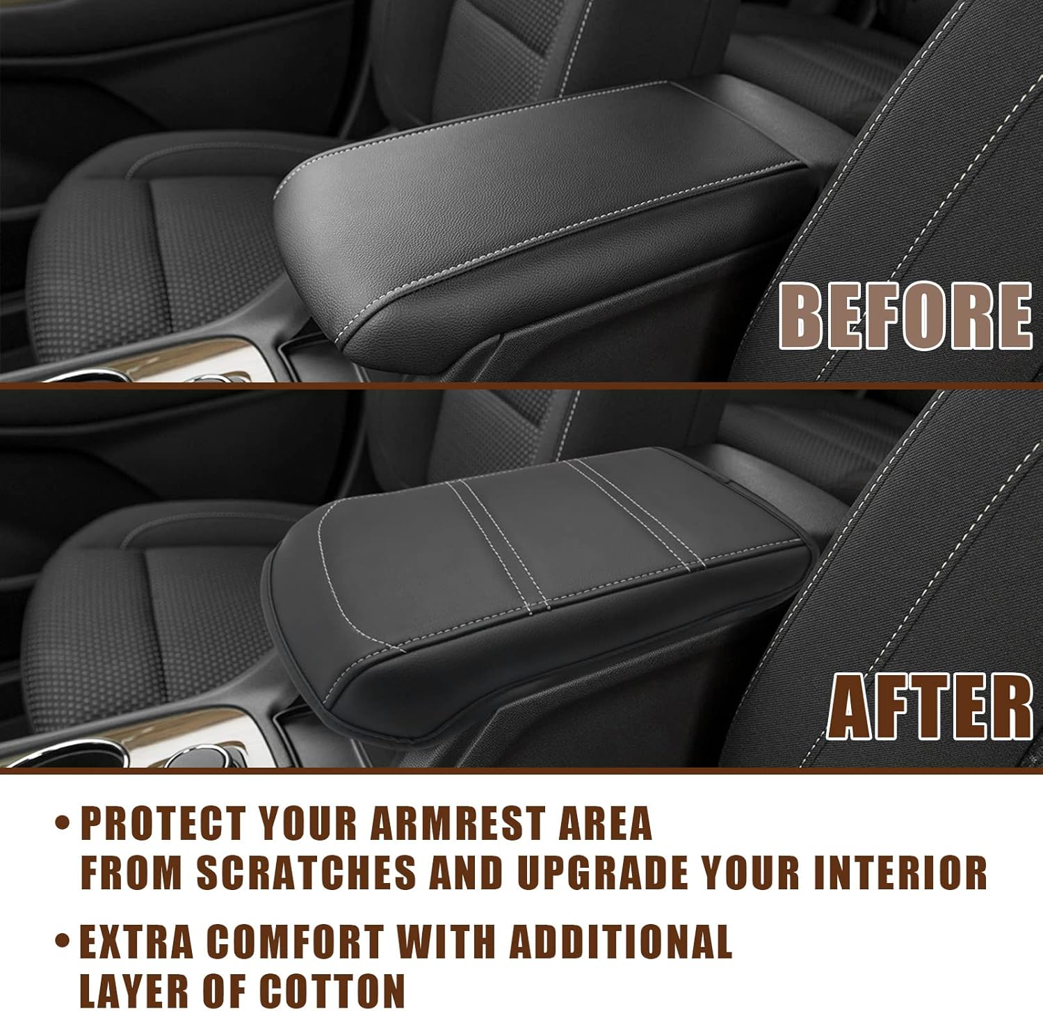 - Unique Design: Designed according to the OEM seat texture to make it match your interior perfectly and even better. Our armrest cover is crafted with high-quality Vegan Leather and an extra layer of cotton, which is skin-friendly, breathable and soft.