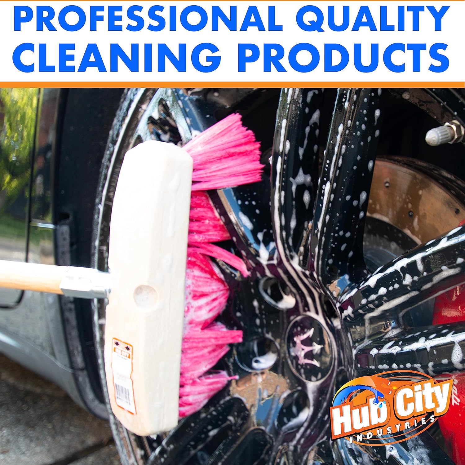 Hub City Industry 10- inch Car Wash Brush, Soft Nylon Bristle, car Accessories, Cleaning Supplies, Automotive wash Brush, Commercial Vehicle Scrub Brush, Flagged Red Poly Bristle