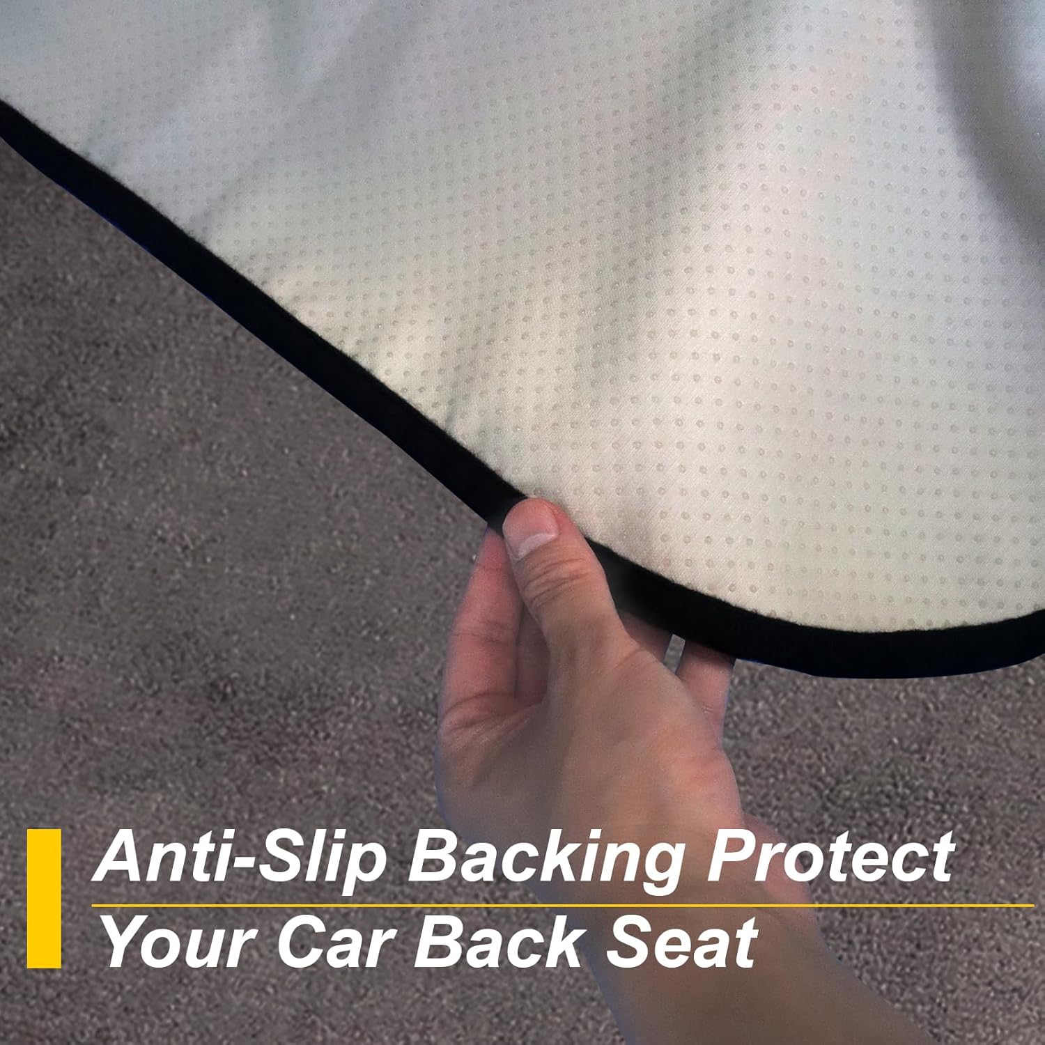 - Made From 3 Layer Material: (Front) Grey towel cloth material, which gives the rear seat cover a good look and a super long life. It is perfect for leather or upholstery back seats. (Middle) Waterproof fabric that is designed to guard your backseat against moisture and sweat. (Back) This rear seat cover are designed with a non-slip backing fabric that's super comfortable and won't slip off your back seat.