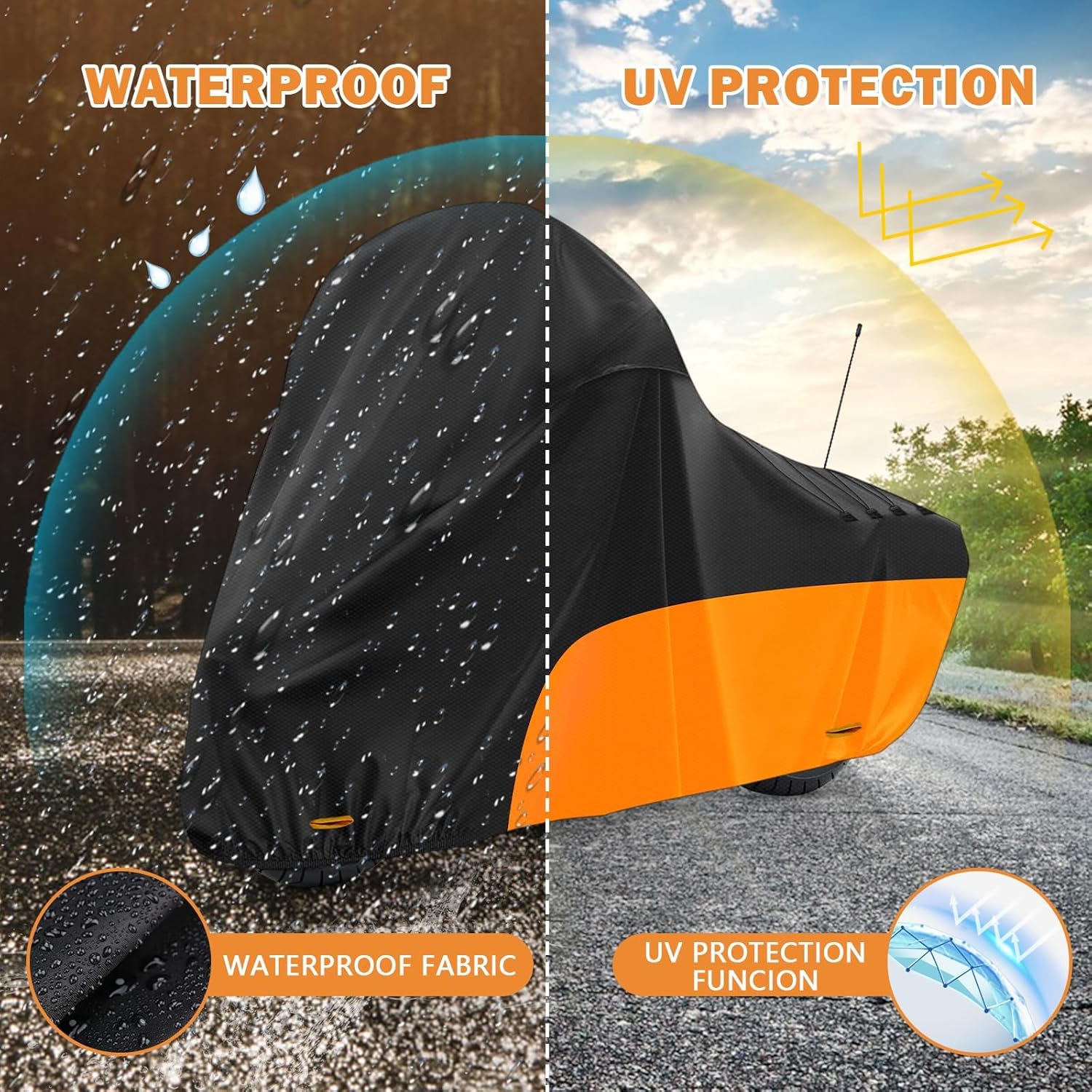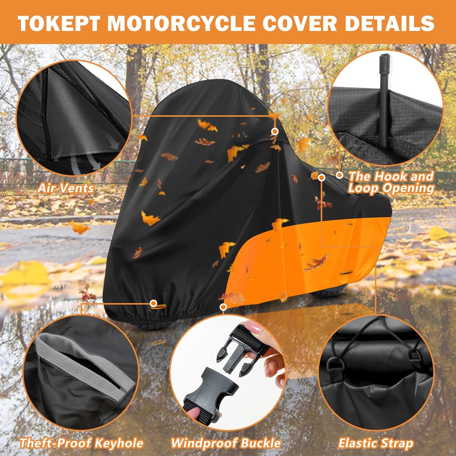 Motorcycle Cover, with Vents Dirt Bike Cover,for Different Touring Models Harley Davidson Road King,Road Glide,Street Glide,Electra Glide,Low Rider-ST (Black&Orange)