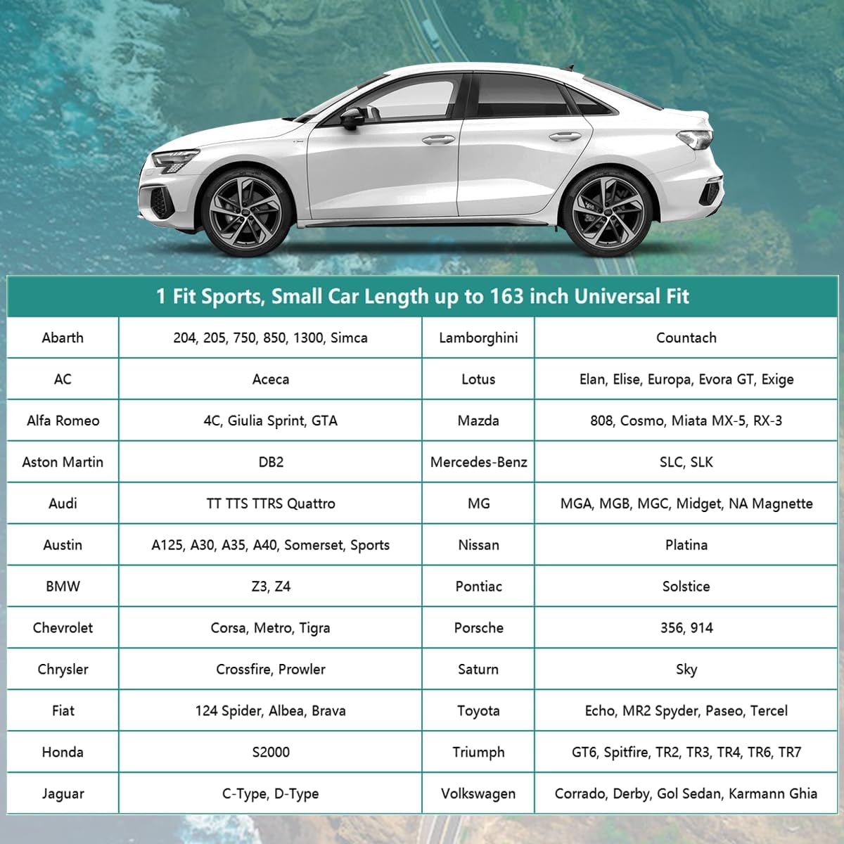 - 【Model Choice】GUNHYI automobiles cover is suitable for Coupe, Sports, Small Car, Sedan, Length up to 163 inch (Not for SUV Hatchback). For exmaple--Mazda Miata/MX-5, Honda S2000, BMW Z3, Chrysler Crossfire, Saturn Sky, Pontiac Solstice, Toyota MR2 Spyder/Tercel, Mercedes-Benz slk-class, Volkswagen Cabrio etc.