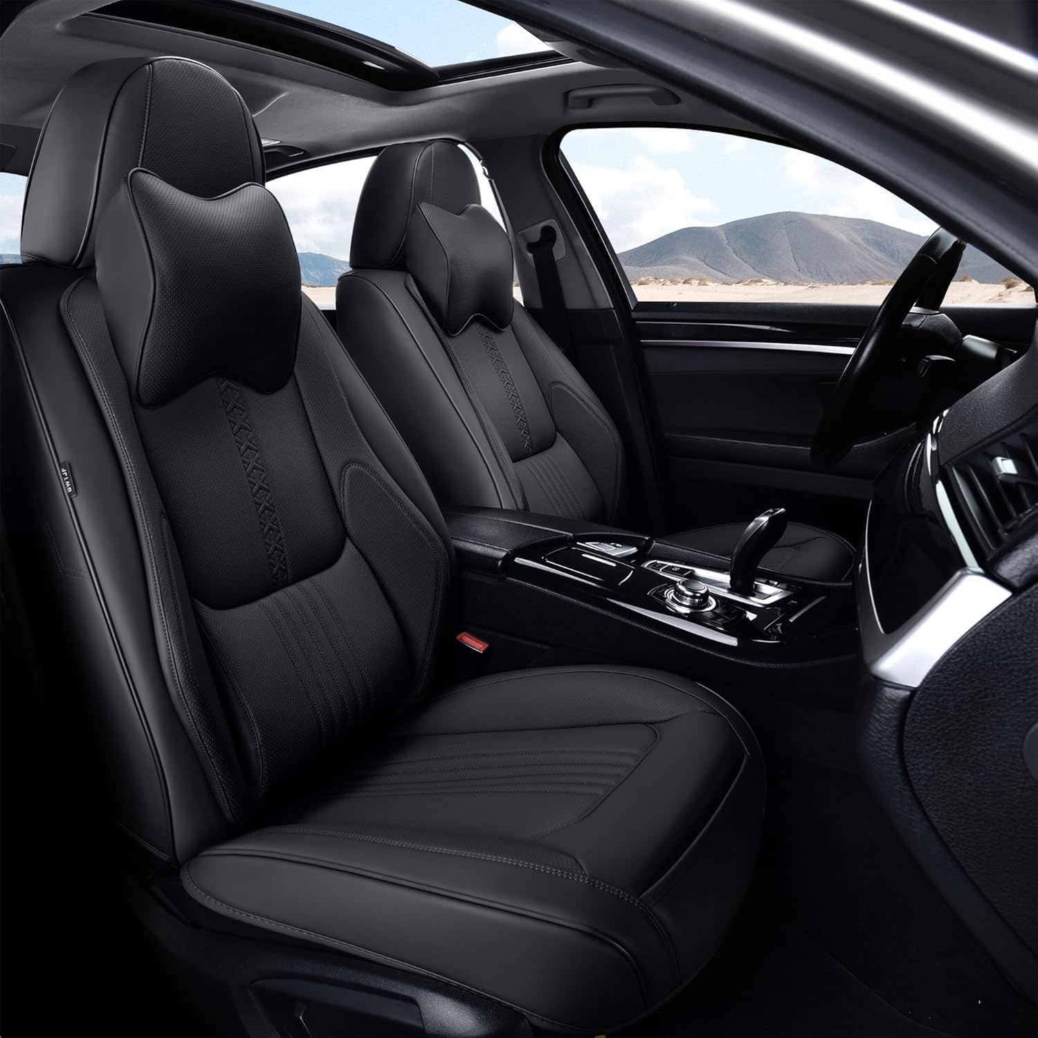 Front Seat Covers, 2 Pieces Universal Seat Covers for Cars, Waterproof Leather Auto Seat Protectors with Head Pillow, Car Seat Cushions Fit for Most Sedans SUV Pick-up Truck, Black