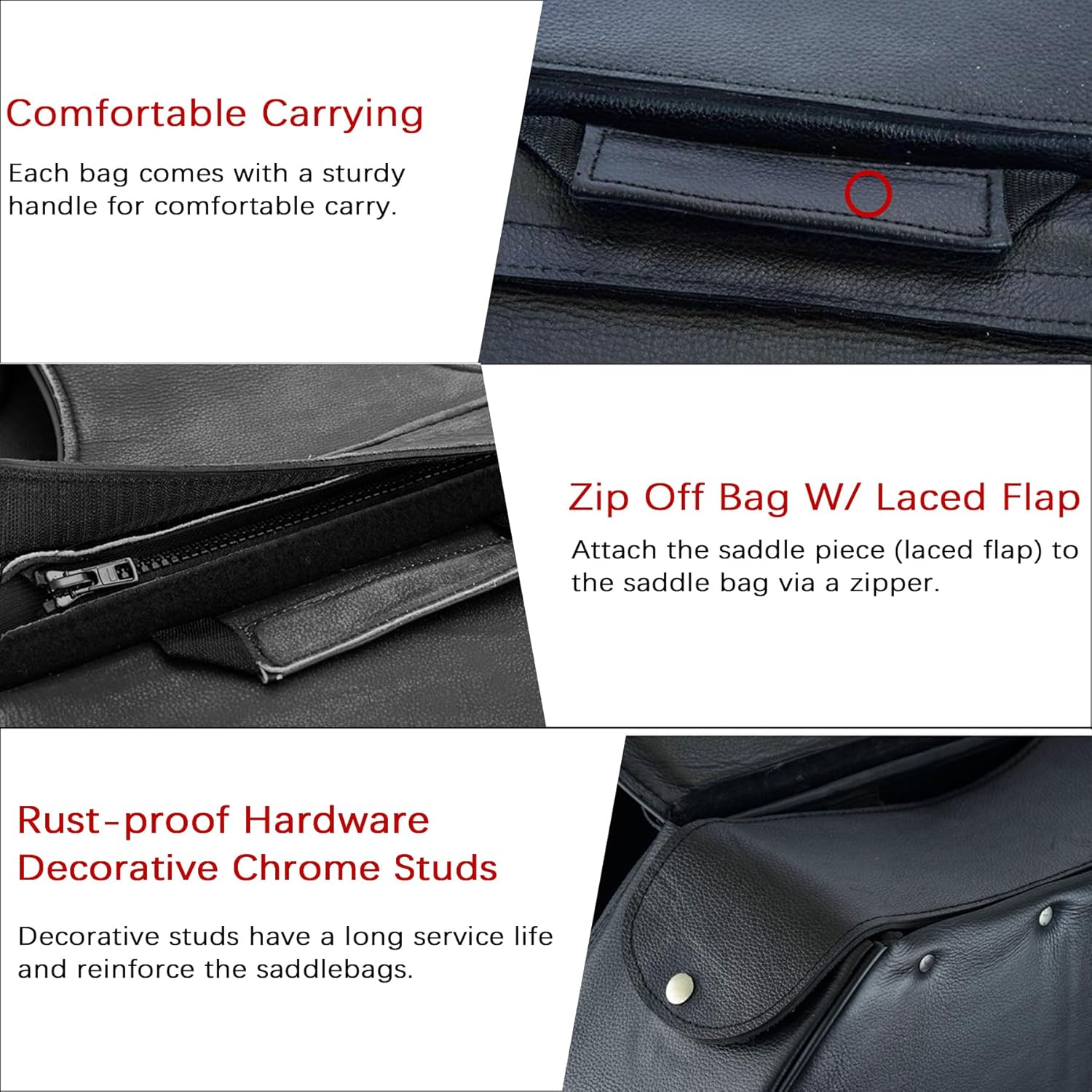 - [Naked Cowhide Leather Saddlebags] - The motorcycle saddle bags are made of genuine naked cowhide leather. Quality leather construction ensures the durability of the saddle bags and keeps your stuff dry from being wet by rain. Leather material resists dust and makes the saddlebags easy to clean. Thick leather and reinforced stitching ensure strong tear resistance of the leather motorcycle side bags.
