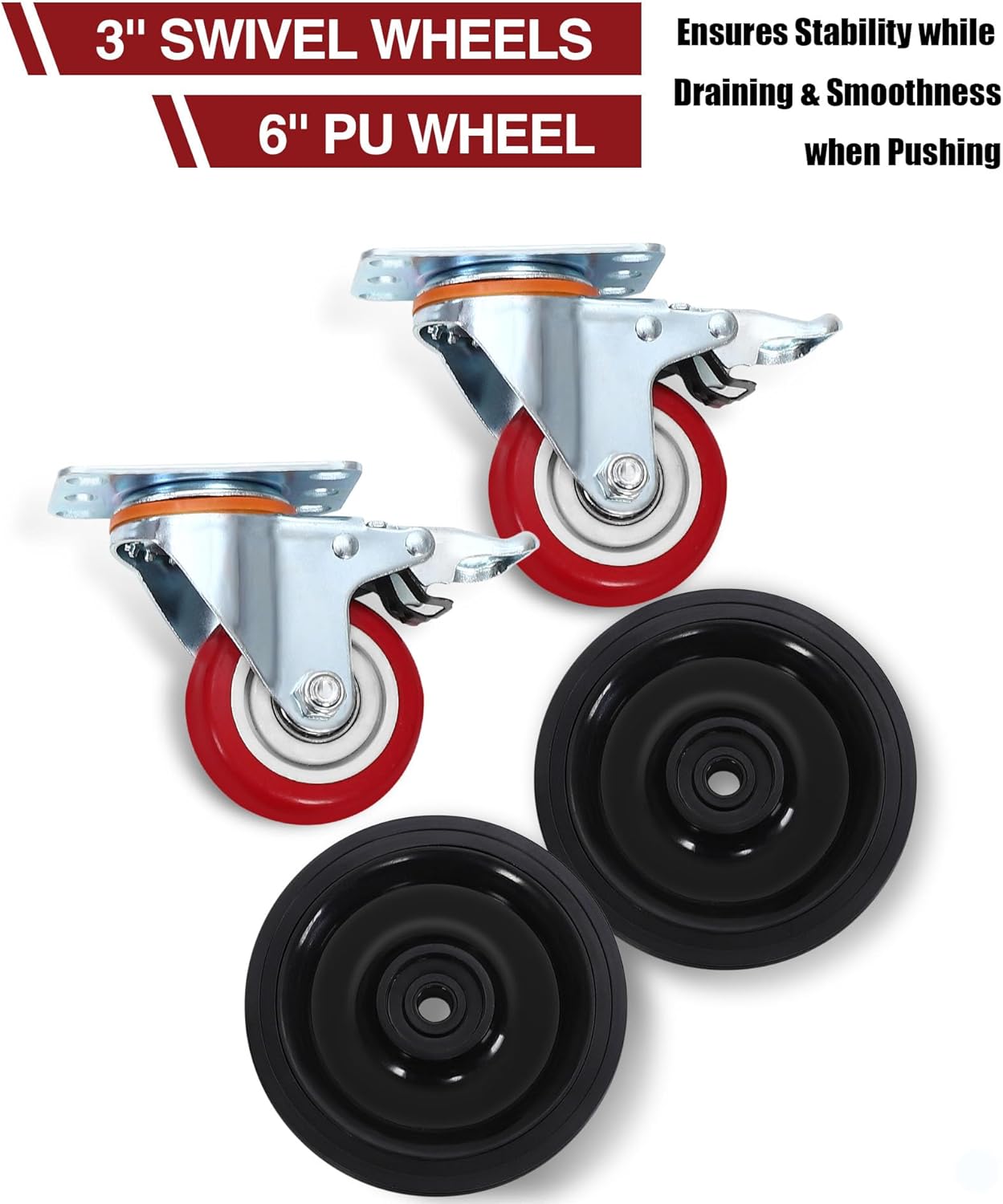 - 🚗[FOLDING T-HANDLE]- Long-reach T-handle makes drain easy to position under vehicles. And it's also great for convenient storage, movment and pulling.