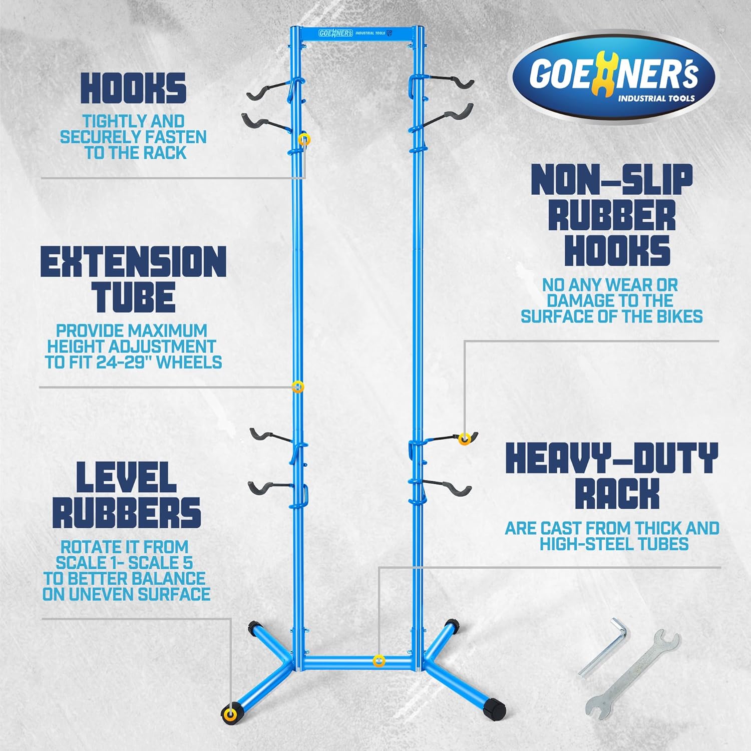 - [Robust Build for Secure Support]: Designed with high-strength forged steel and reinforced legs, this bike storage rack offers a robust build, ensuring steadfast stability and the ability to support weights of up to 240 lbs (maximum 60 lbs per bike).