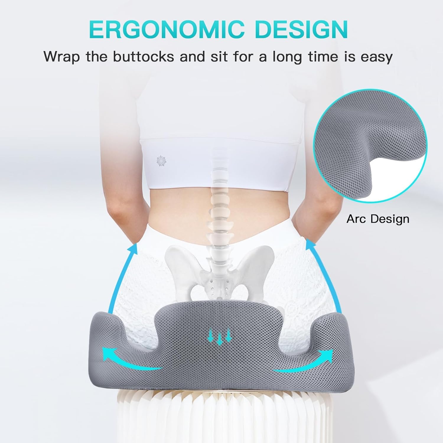 - 🏅【Pain Relief】Designed with an ergonomic "W" shape, Ergonomically designed seat cushion provides support and comfort while reducing pressure on the lower back, waist, hips and improving your posture.