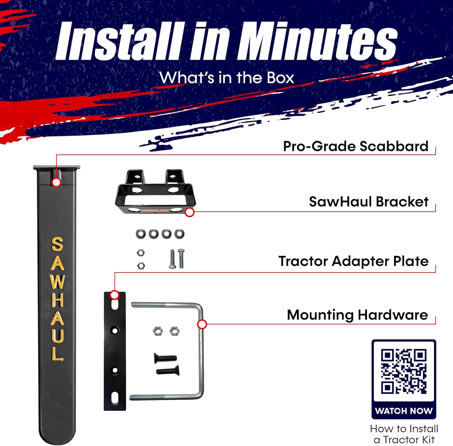 - PROTECT YOUR SAW AND YOUR TRACTOR. Transport with peace of mind using the SawHaul chainsaw mounting bracket, designed to safeguard your chainsaw and tractor from accidental damage. This chainsaw scabbard ensures secure storage during transit, minimizing wear and tear while reducing costly repairs.