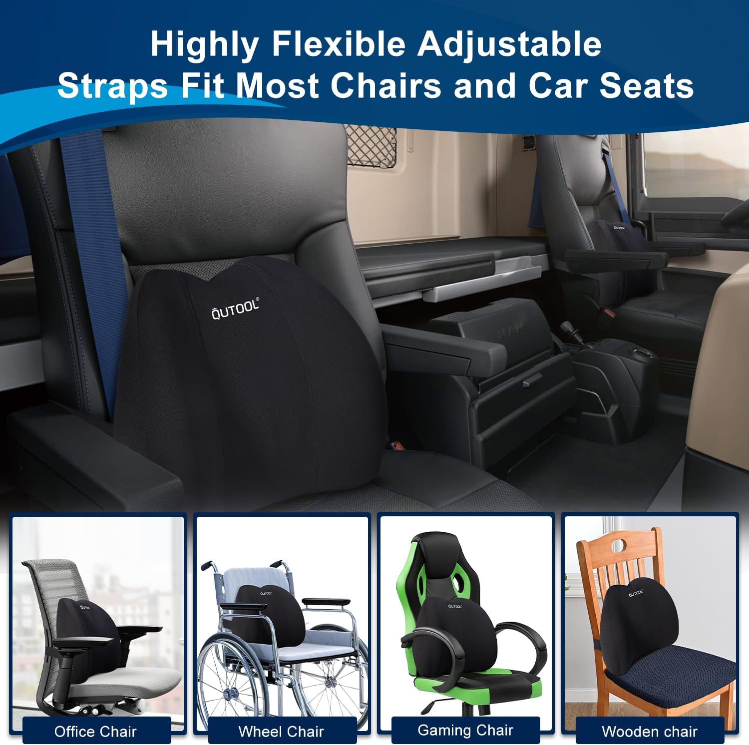 - 𝐂𝐎𝐌𝐏𝐀𝐓𝐈𝐁𝐈𝐋𝐈𝐓𝐘 𝐖𝐈𝐓𝐇 𝐂𝐇𝐀𝐈𝐑𝐒: QUTOOL lumbar pillow have adjustable, upgraded straps, so no matter how you move, the back cushion will stay firmly attached to office chair, computer chair, dining chairs, wheelchair. It may not be suitable for car, recliners, accent chairs, or any seating in small spaces.