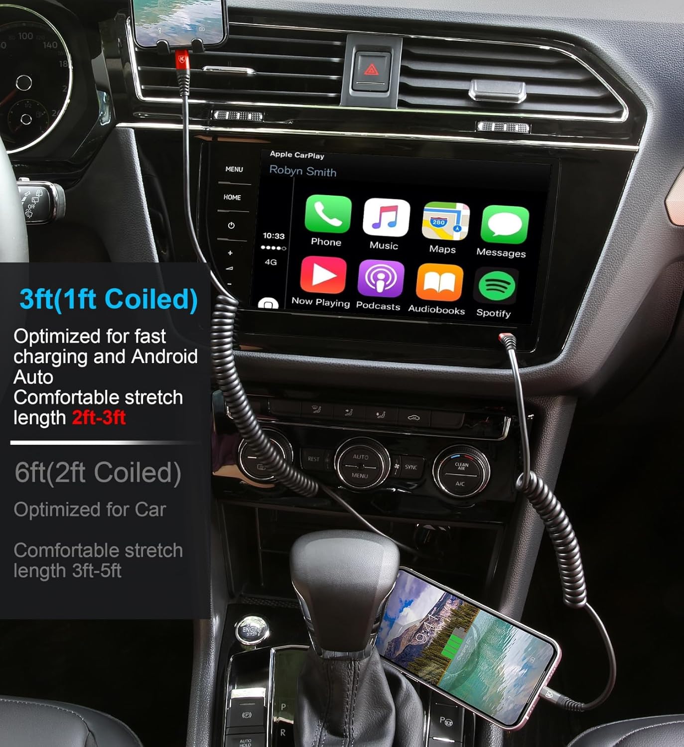 - USB C iPhone Charger Cable for Car : Retractable iPhone car charger with spring shape design, portable and not tangled. It can well save the use of space in the car and say goodbye to the hassle of data cable clutter and tangles.