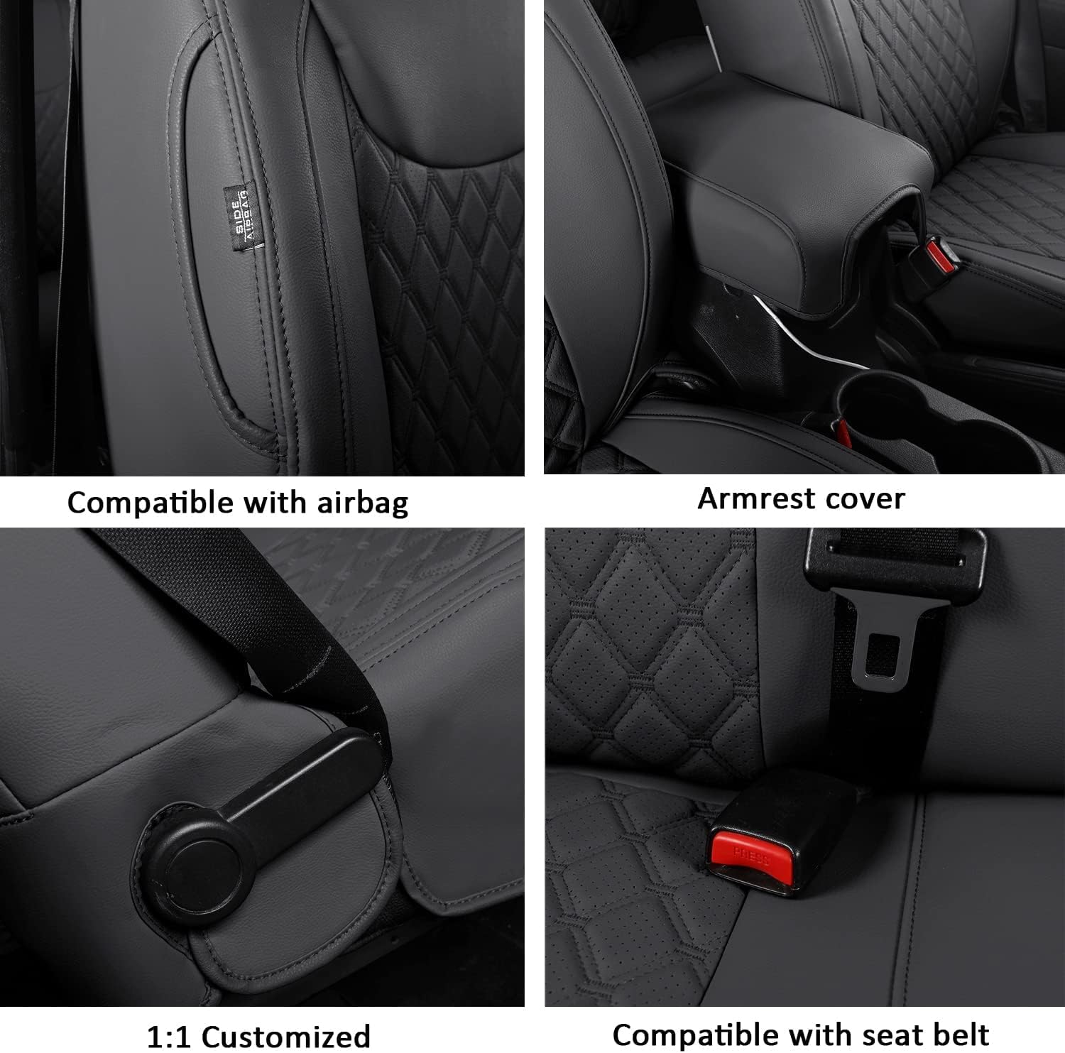 - 【QUILTED DESIGN】 - Both of the front seat cover and rear seat cover show rich in stereoscopic vision with a diamond-shaped quilted design and stitching decoration, simple and stylish, and it can be perfectly integrated with your car interior.