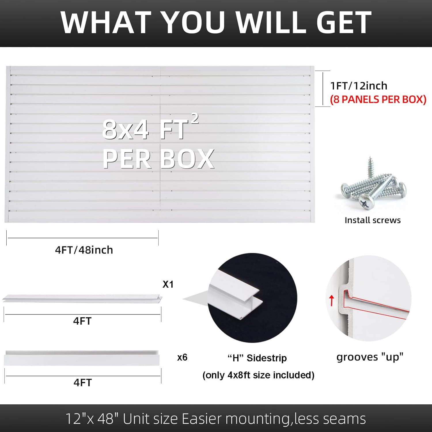 Slatwall Panels 4x8 ft Garage Wall Storage System, PVC Slat Wall Paneling Garage Organizers and Storage Utility Rack Heavy Duty, Garage Slatwall for Tool Organization Peg Board (White)