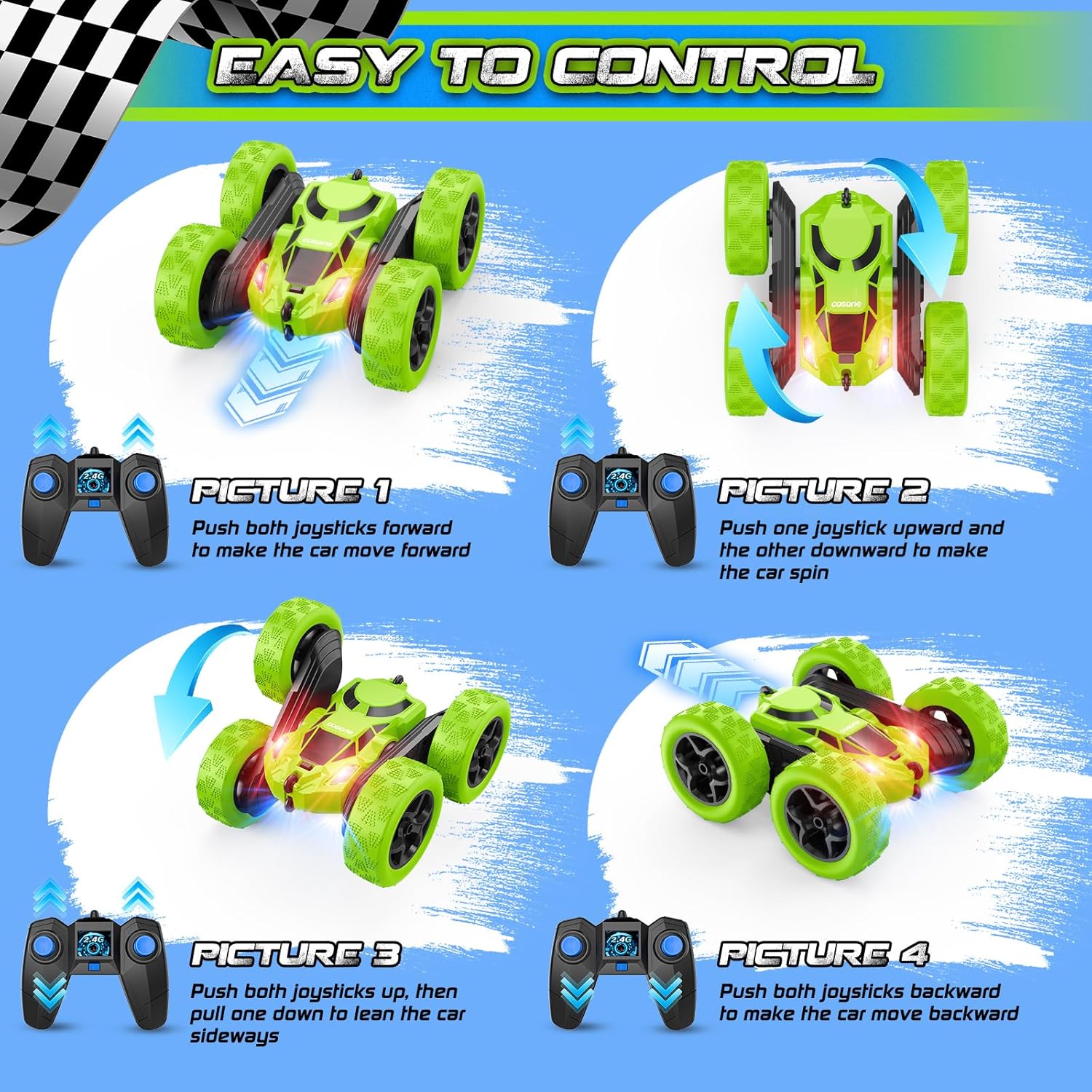 Remote Control Car - RC Car Toys for Boys - 4WD 2.4Ghz Double Sided 360° Rotating RC Cars, Birthday Gifts for Kids Age 6 7 8-12 for Boys and Girls- Green