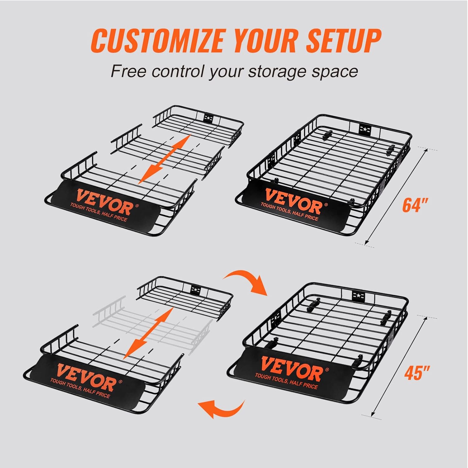 VEVOR Roof Rack Cargo Basket, 64" x 39" x 6" Rooftop Cargo Carrier with Extension, Heavy-Duty Steel 200 LBS Capacity Universal Roof Rack Basket, Luggage Holder for SUV, Truck