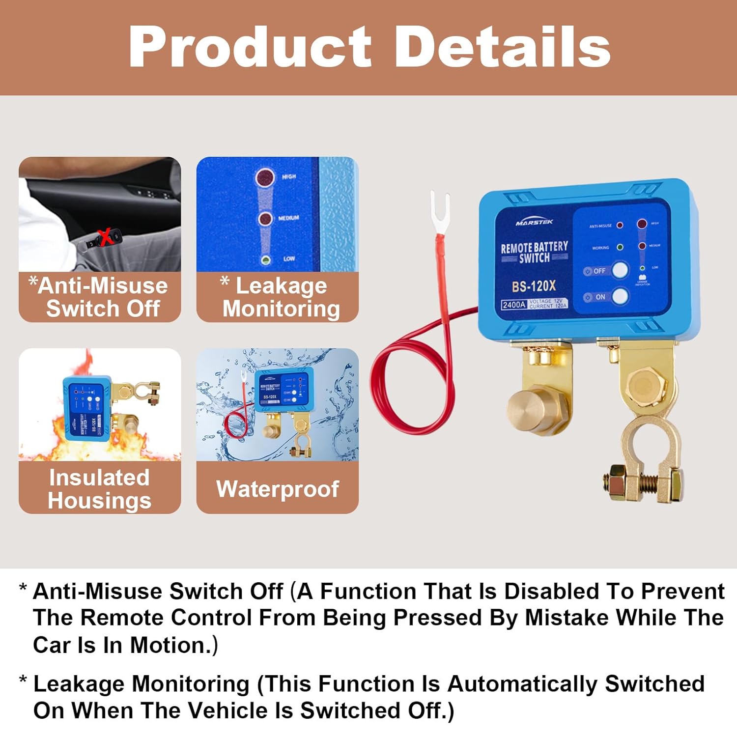 - Practical and Functional: When battery kill switch intelligently detects car battery leakage, it will automatically disconnect the battery main switch and lock 60% of the power for the next start the vehicle, thus to protect the battery and greatly extend battery life.