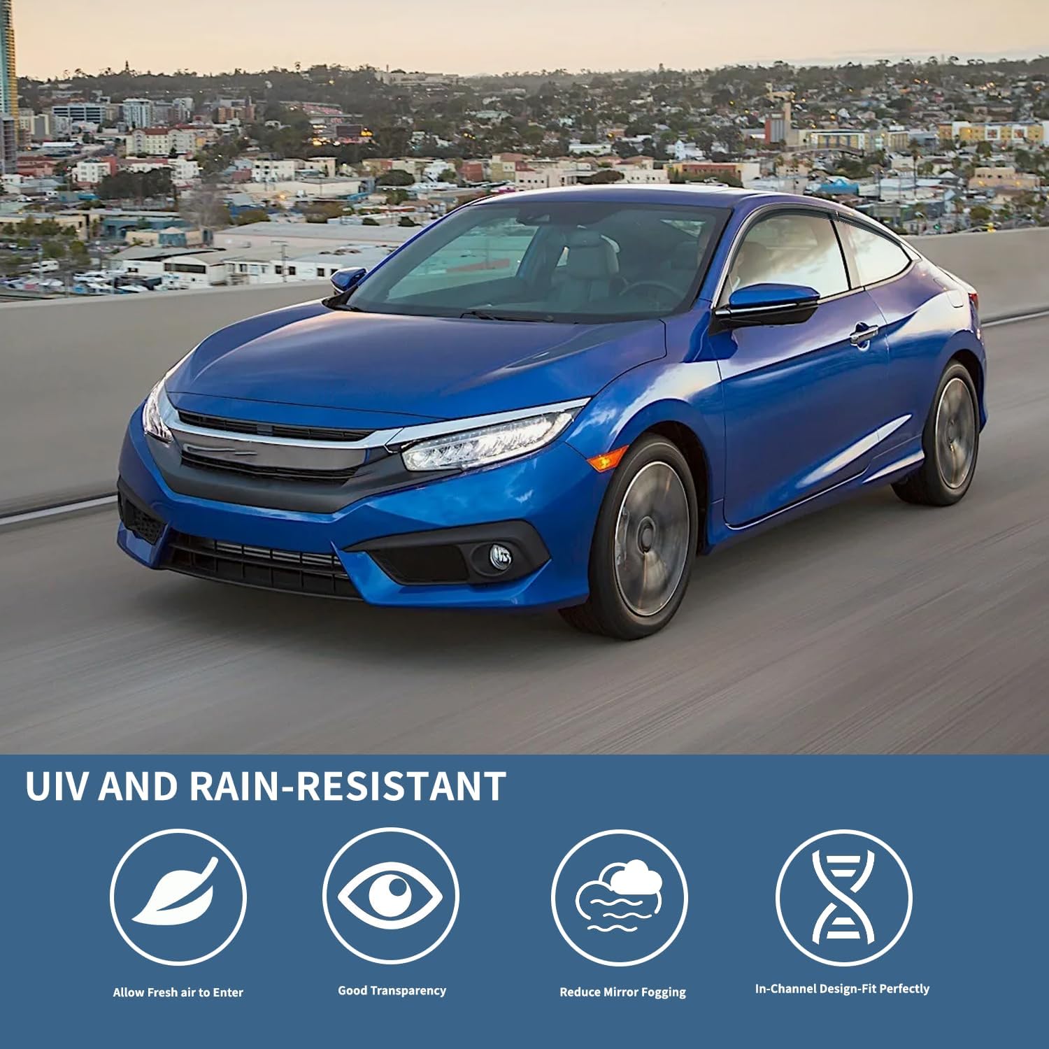 - 【FITMENT】: 4pcs sun rain snow guard wind deflector vent shade side window visors compatible with Honda Civic 2016 2017 2018 2019 2020 2021 (16-21) 4d/4dr sedan model