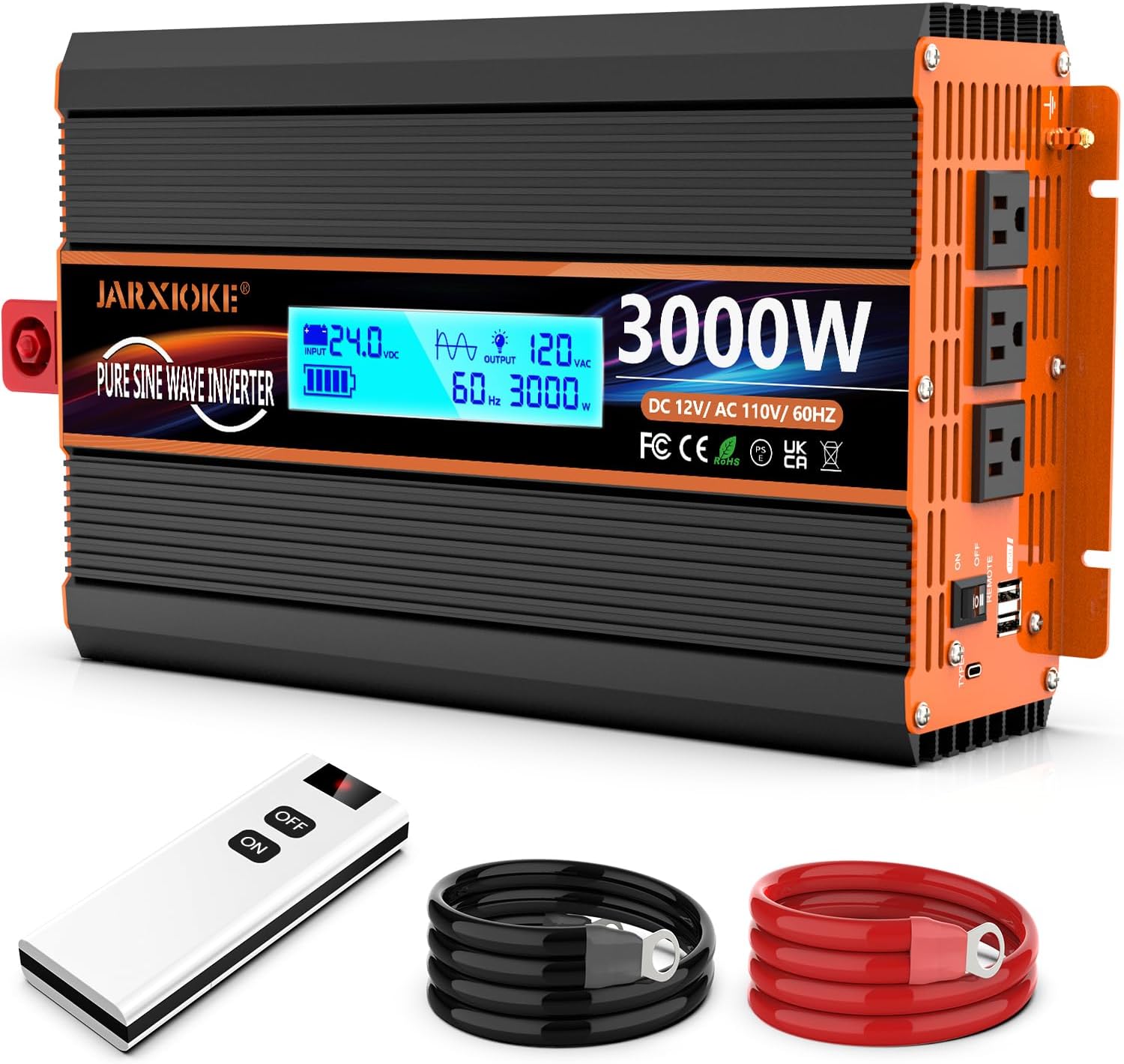 - ☀【After-sales guarantee】You will get: JARXIOKE 3000W 24V pure sine wave power inverter, cable, remote control and user manual. We provide 24 months warranty for each order. If you have any questions, please contact us via email!
