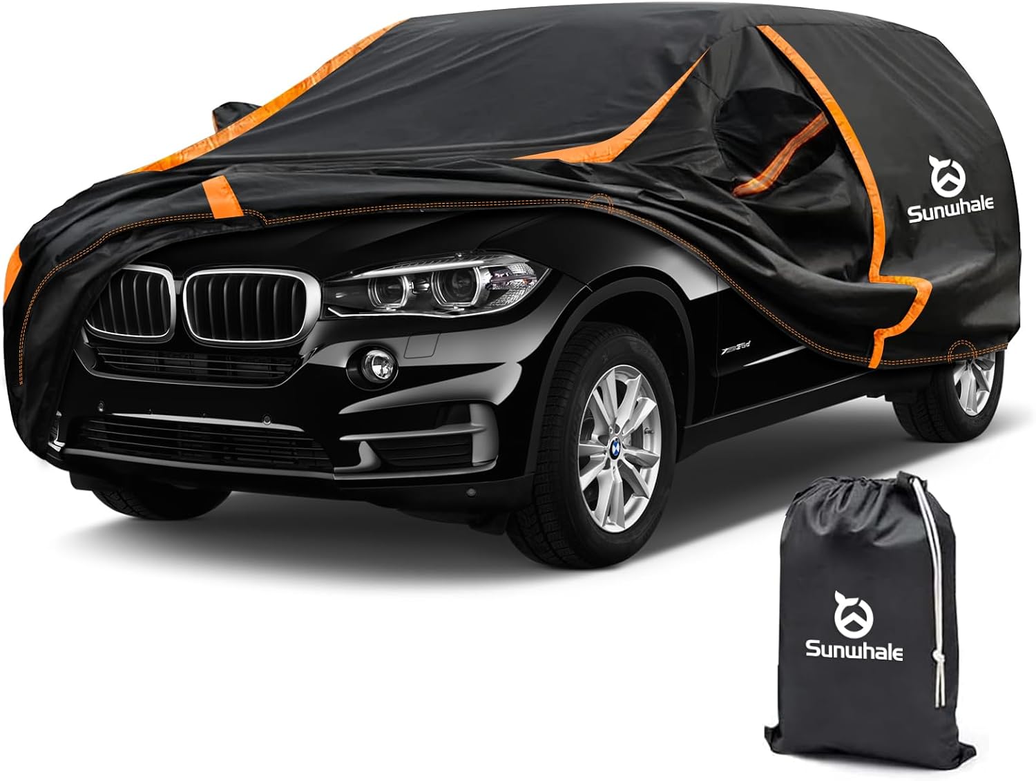 - 【All-Weather Protection】Sunwhale car covers serve as a portable garage, offering comprehensive shielding for your vehicle against all weather elements throughout the four seasons of spring, summer, autumn, and winter. They are designed to be scratch-resistant, sun-proof, windproof, hail-proof, snow-proof, and dust-proof, providing unmatched protection in extreme weather conditions. They are the ultimate choice for year-round protection.