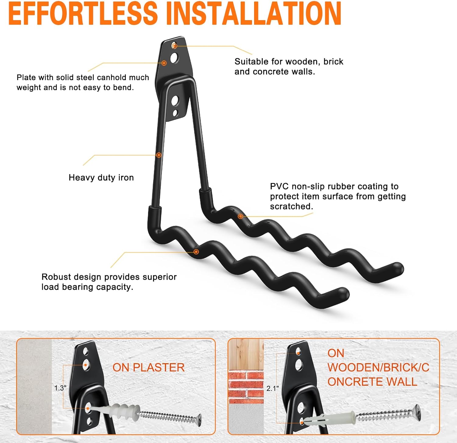 - Easy Installation: The garage hooks come with two types of screws, including 8 sets of screws and wall plugs, to accommodate different wall surfaces. Depending on your storage needs, you can install the garage wall hooks on brick/concrete/wood walls or drywall.