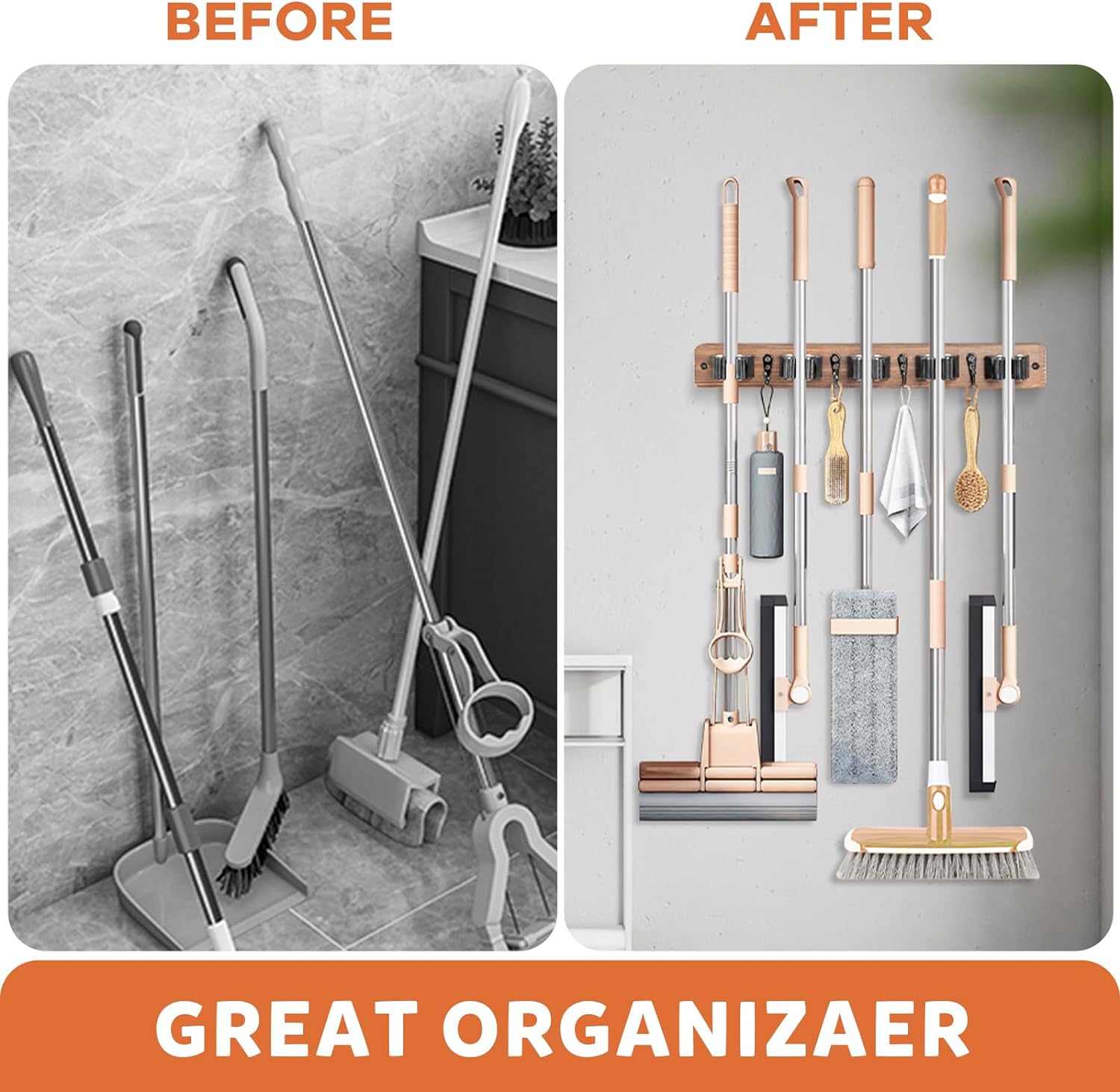 - EASY TO INSTALL and USE: Easy install for any busy mom, just drilling it into the stud, and never worry about slipped off or fallen off. It is easy to get the broom or mop to go into the holder, even you can push the broom in and remove it with one hand. Its ease of use makes it a must-have for anyone looking to streamline their organization