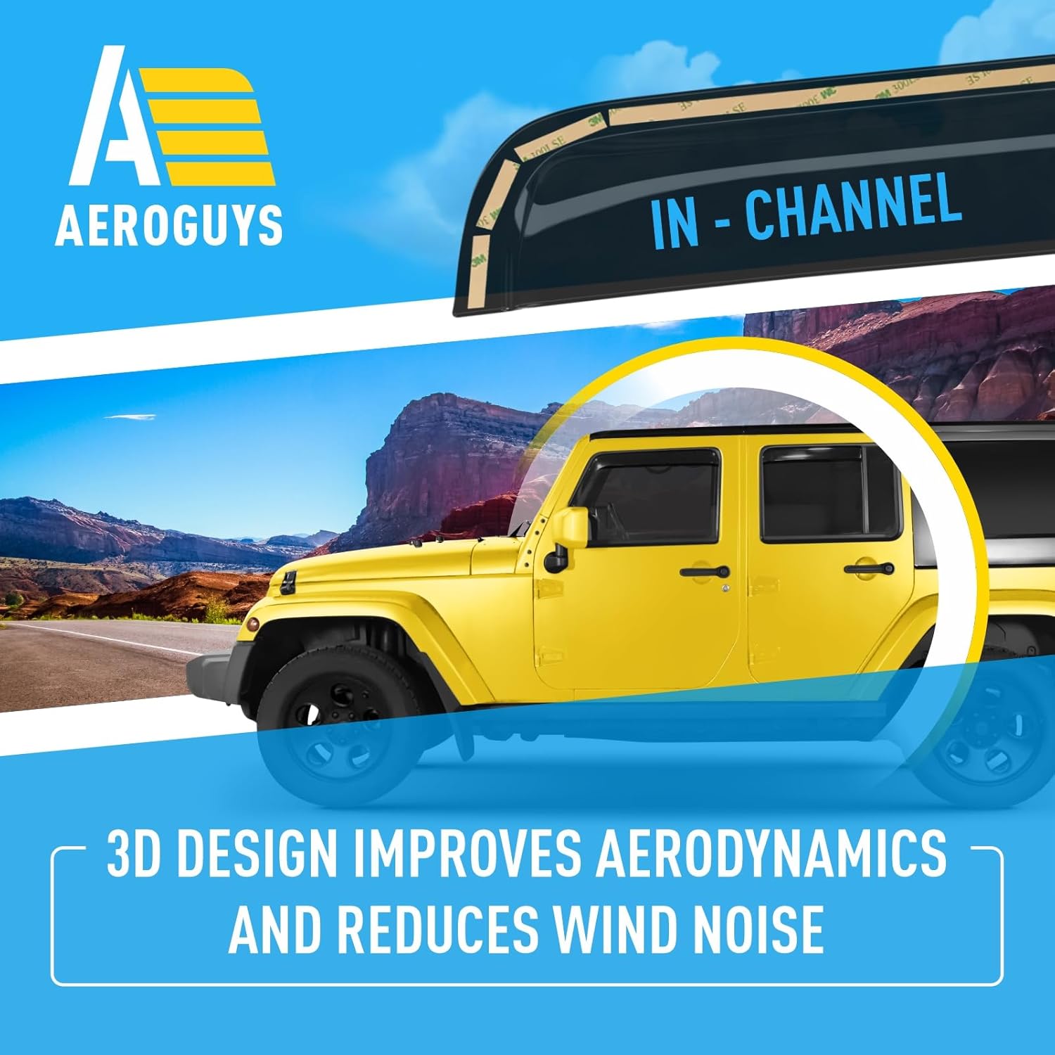Extra Durable Window Deflectors in-Channel Window Visors Rain Guards Fit for Jeep Wrangler JK 2007-2018, Sun Visors, Wind Vent for Shades, Exterior Car Accessories - 4pcs. AG0263