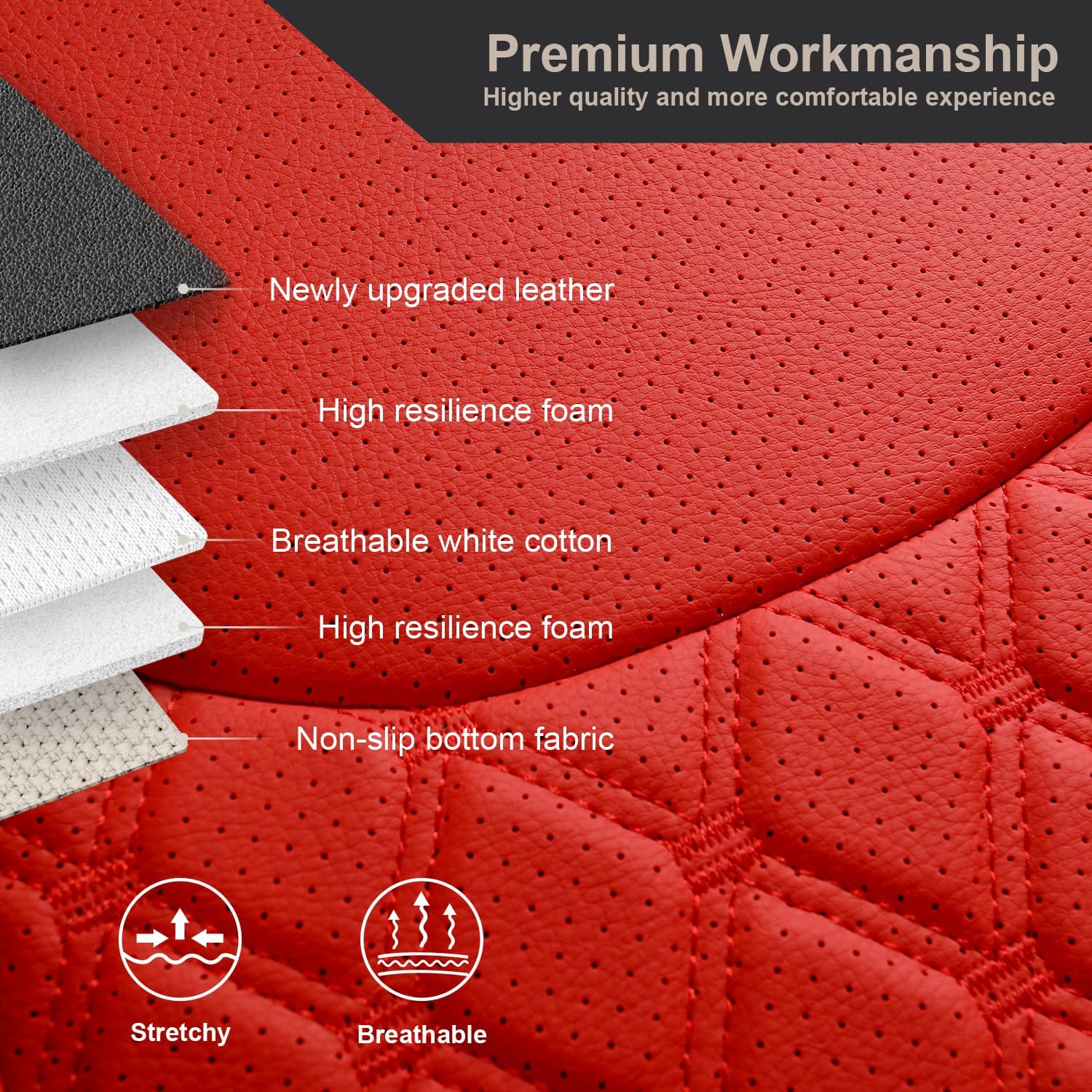 - 【MATERIAL】 - These car seat covers are made of soft faux leather, which is comfortable to the touch, wear-resistant, waterproof and easy to clean.
