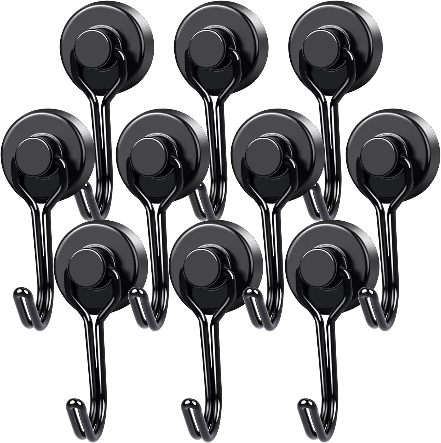 MIKEDE Magnetic Hooks, 40Lbs Heavy Duty Neodymium Magnet Hooks Black Magnetic Swivel Hooks for Hanging, 10 Pack Rust Proof Strong Magnets with Hook Metal Hanger for Fridge, Toolbox, Storage