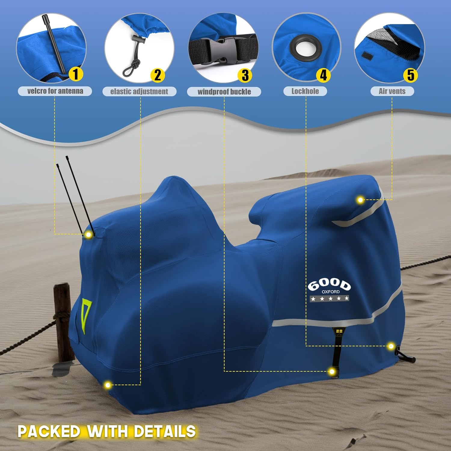 - 🛵【Exclusive improvement】: adjustable elastic band is added to the whole circle of the bottom of the motorcycle cover, with an adjustable windproof buckle in the center, which can be adjusted to make the cover and the motorcycle tighter. In addition, the front and back section of the cover has ABS lock hole.