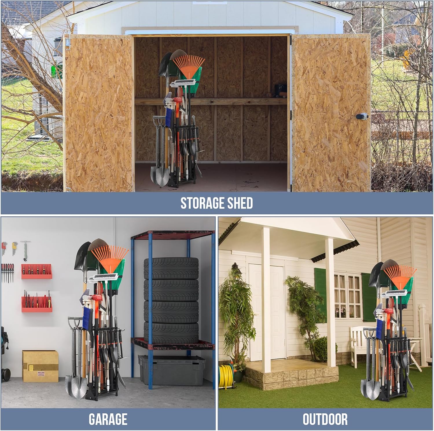 Garden Tool Organizer Holds 50 Long-Handled Tools/Rakes/Brooms/Shovles for Garage Organization and Storage, Shed, Outdoor, Lawn, Heavy-Duty Steel, Black, Easy Assembly (Corner Tool Organizer)
