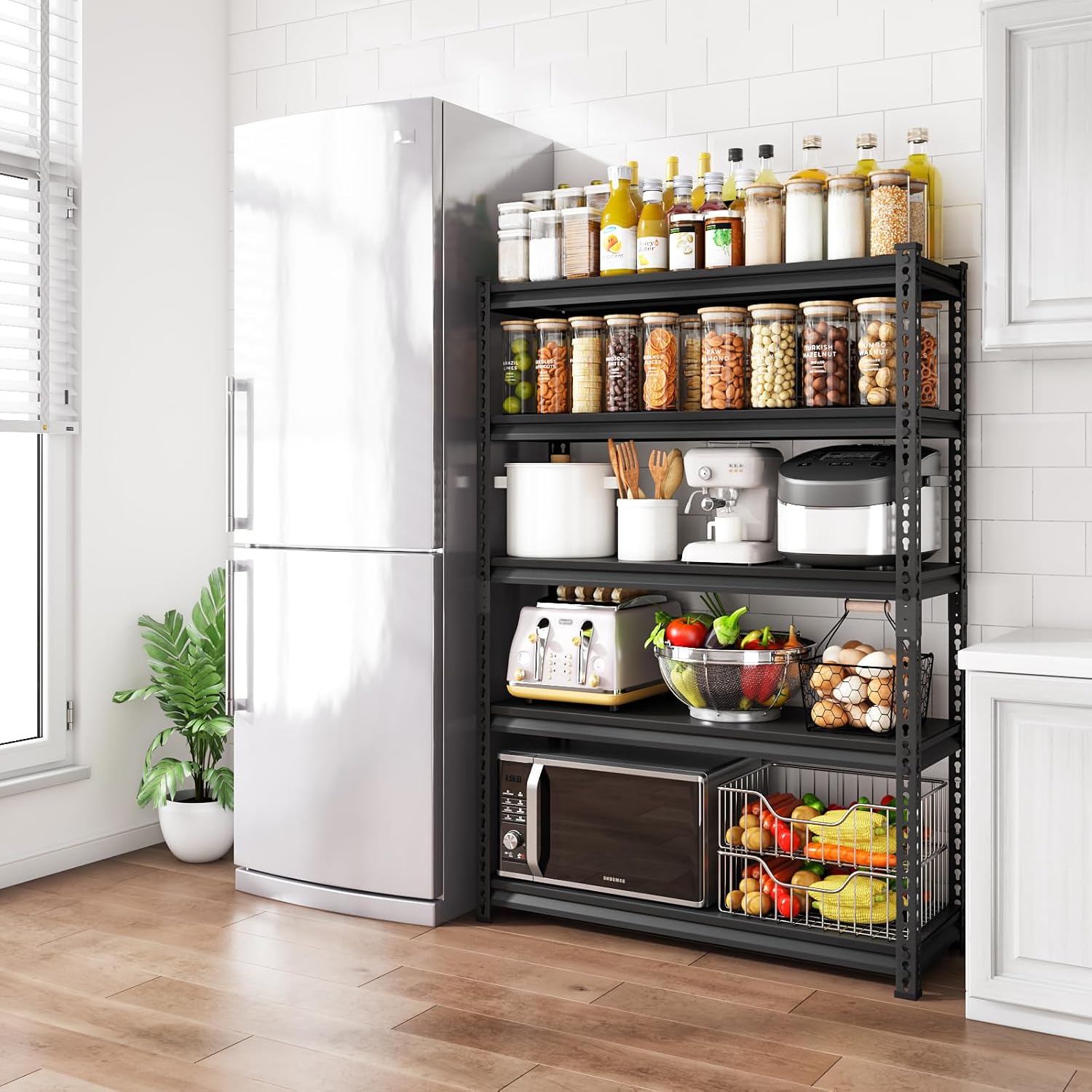 - 【2500 lbs Load Capacity】The 5-tier garage shelves is definitely an upgrade from the traditional wire shelves of the past.All metal shelves with the bracing ribs complete the unit with 2500 lbs bearing capacity for organizing heavier items or breeder tanks.