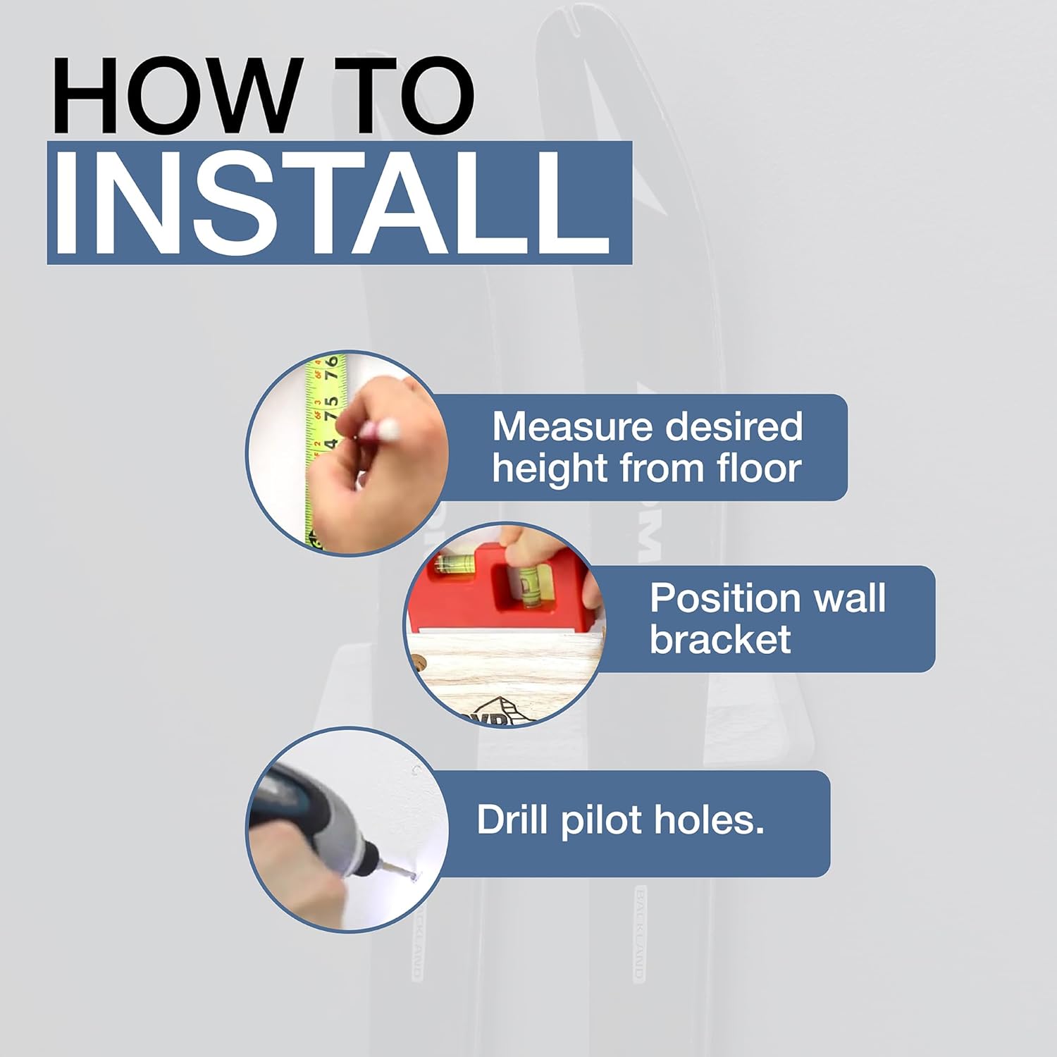 - EASY INSTALLATION – The ski mount wall rack includes (2) wood screws, (2) drywall anchors, and (2) rubber brake ties for a hassle-free setup. Mounting holes are spaced 10.75" apart to align with wall studs, and one drywall anchor can be used when only one stud is available.