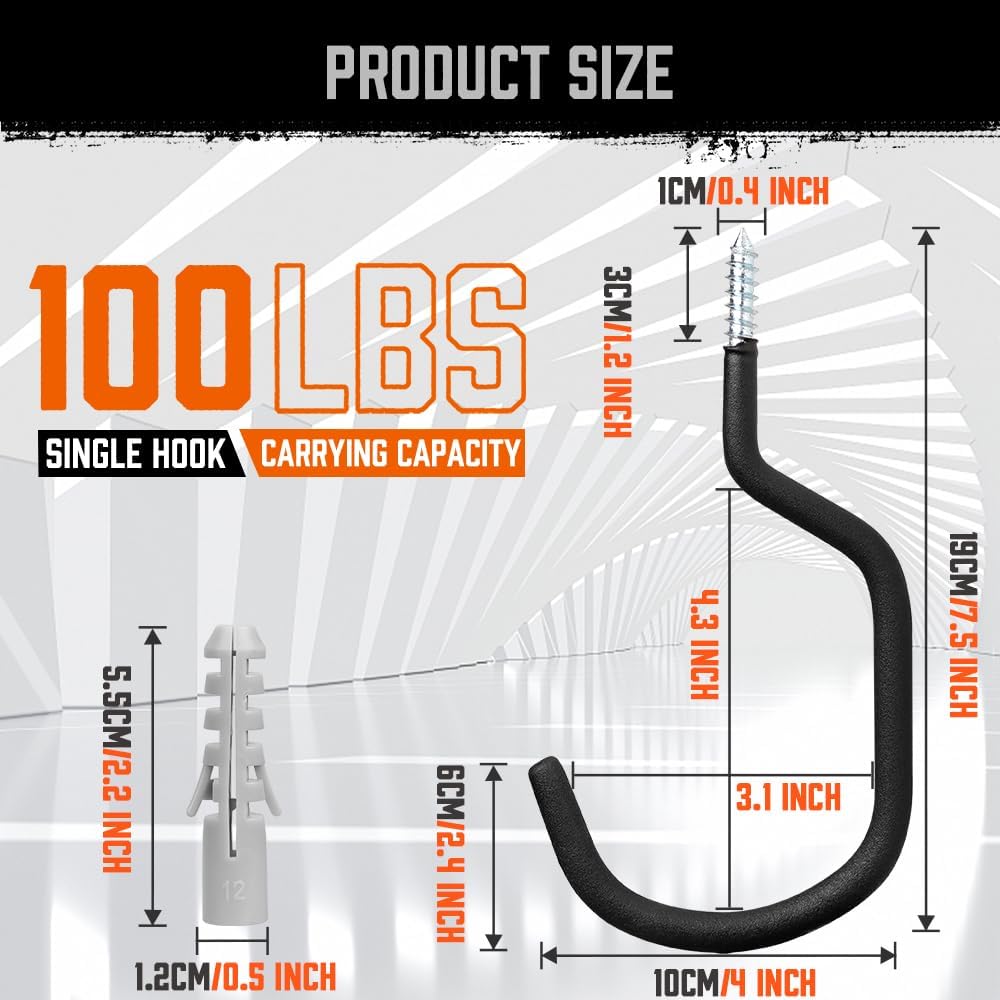 HORUSDY 6 Pack Heavy Duty Bike Hooks - 7.5 inches, 100LBS Capacity for Garage Wall and Ceiling