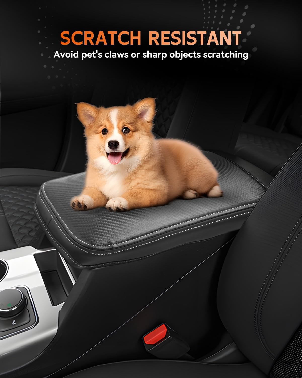 - [Excellent Scratch Resistance] The car Armrest Cover mat is made of high quality PU microfiber leather, thick enough to keep out pet paws, dust and sticky fingers. The surface is waterproof, wear-resistant and durable, breathable, light weight and easy to wipe clean of dirt.
